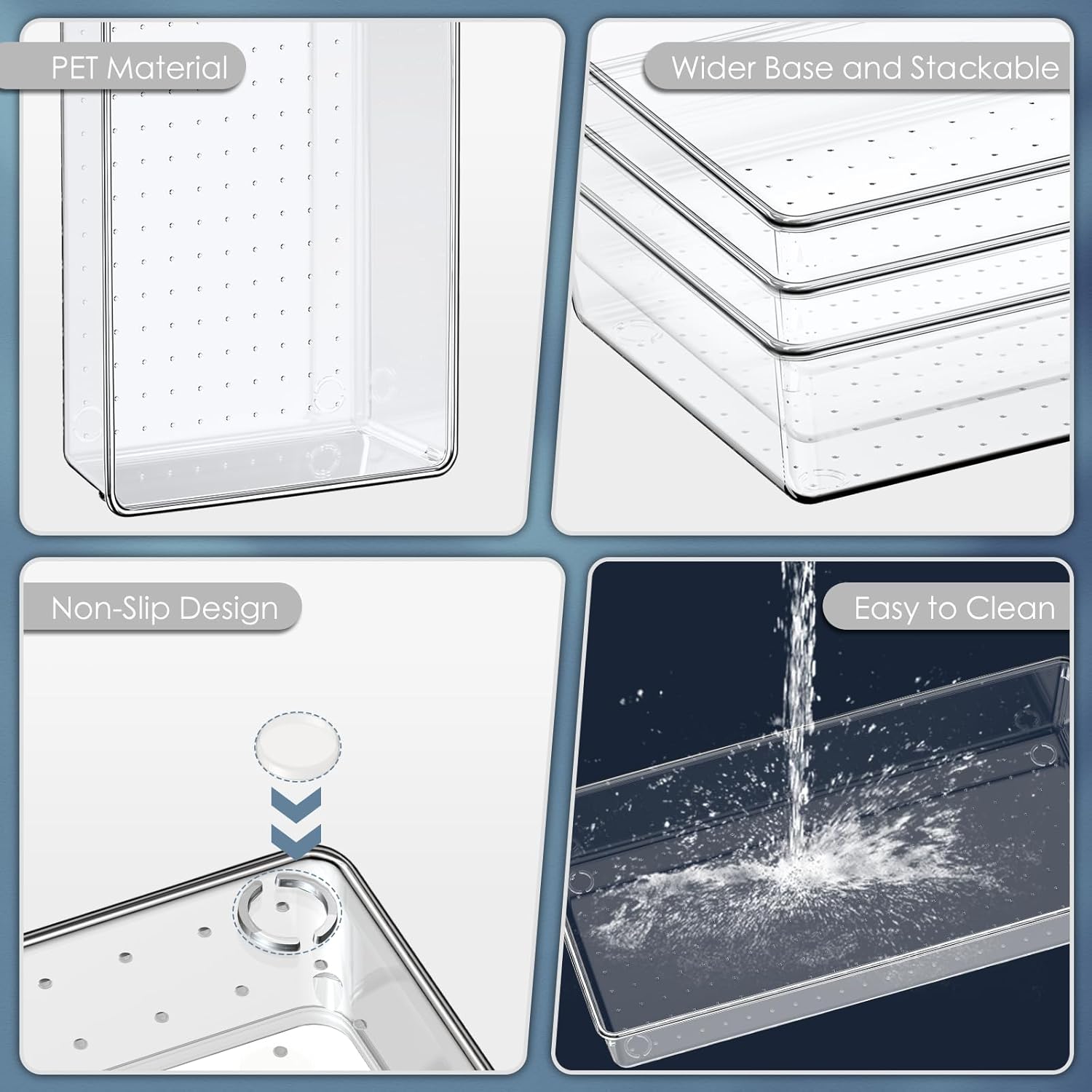 12 Pack Large Clear Plastic Drawer Organizer Set, Acrylic Bathroom Organizer Vanity Trays Dividers, Kitchen Organizers and Storage, Non-Slip Storage Bins for Makeup, Snacks, Office, Desk, Fridge