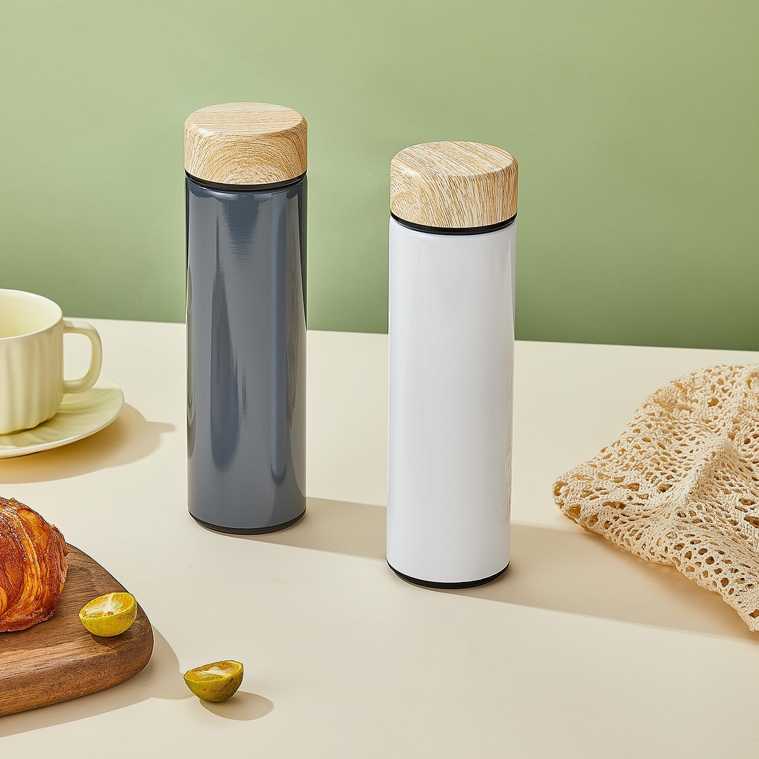 15oz Water Bottle Stainless Steel Thermos Flask - Insulated Vacuum, Leak Proof, Keeps Drinks Hot/Cold - Ideal for Coffee, Tea, Water - White