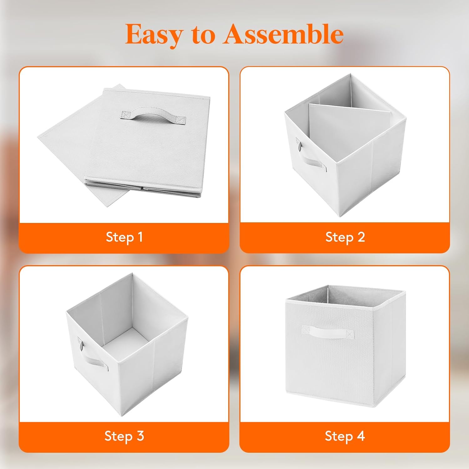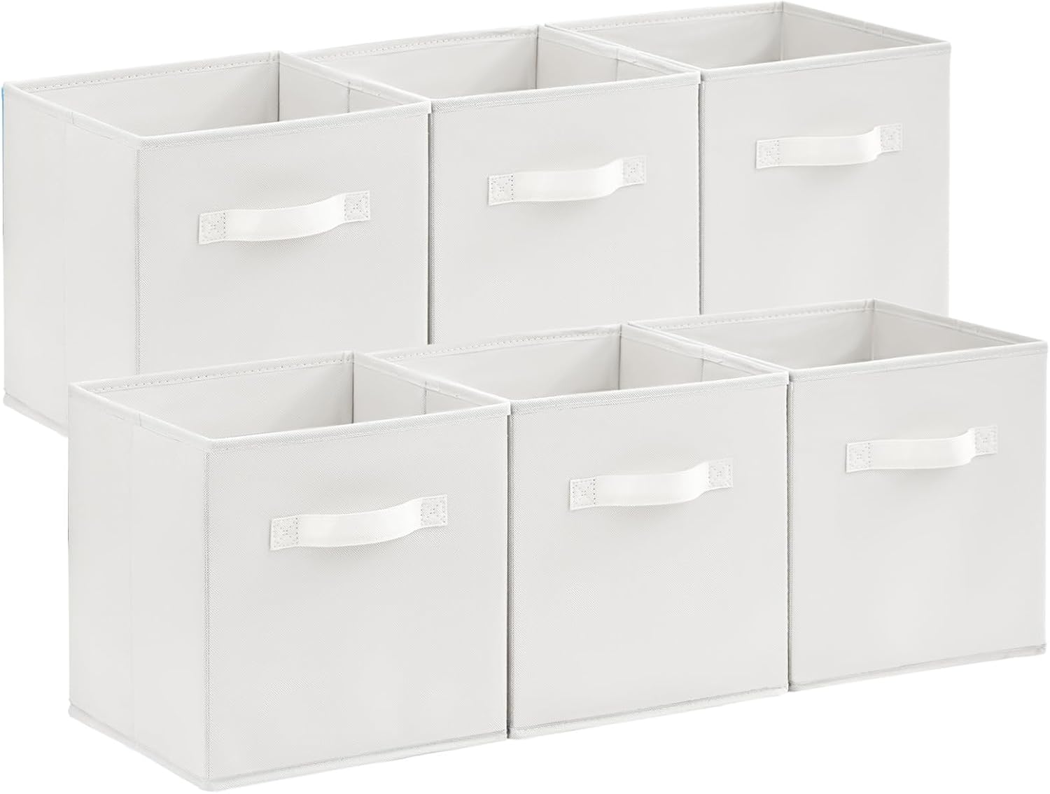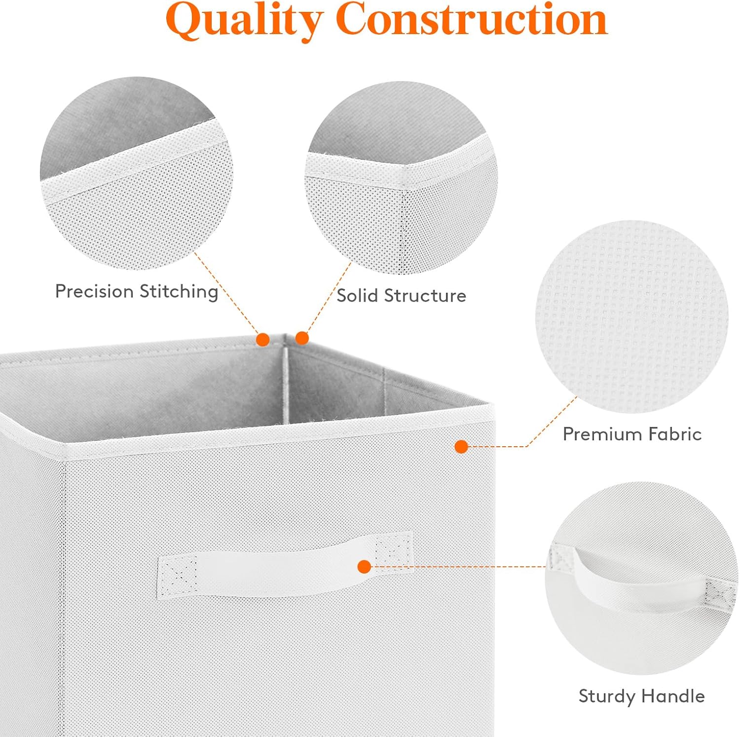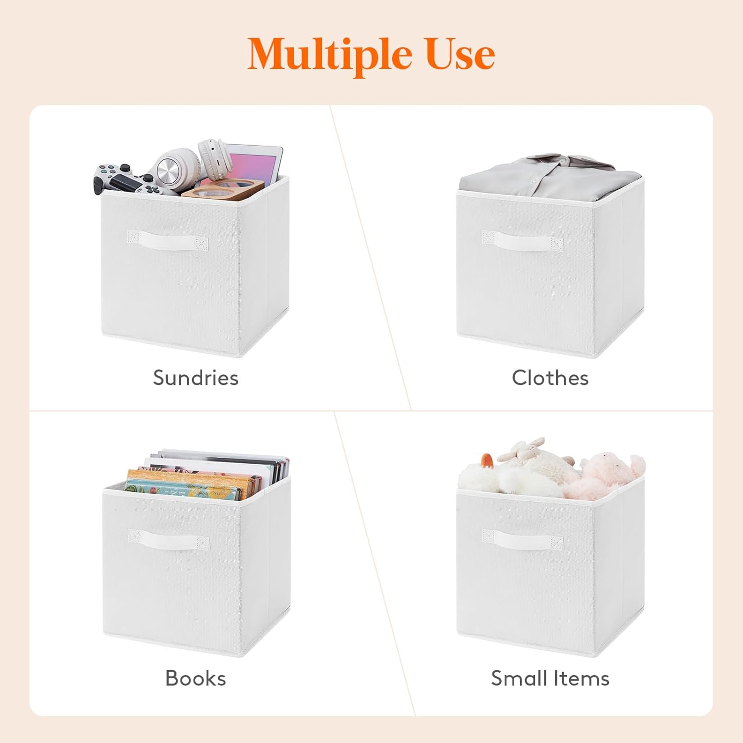 Lifewit Collapsible Fabric Storage Cubes Bins Set 11 Inch, Foldable Cubby Organizers Boxes, 6 Pack Organizing Baskets for Shelf, Closet, Utility Room, Storage Room, 18L White
