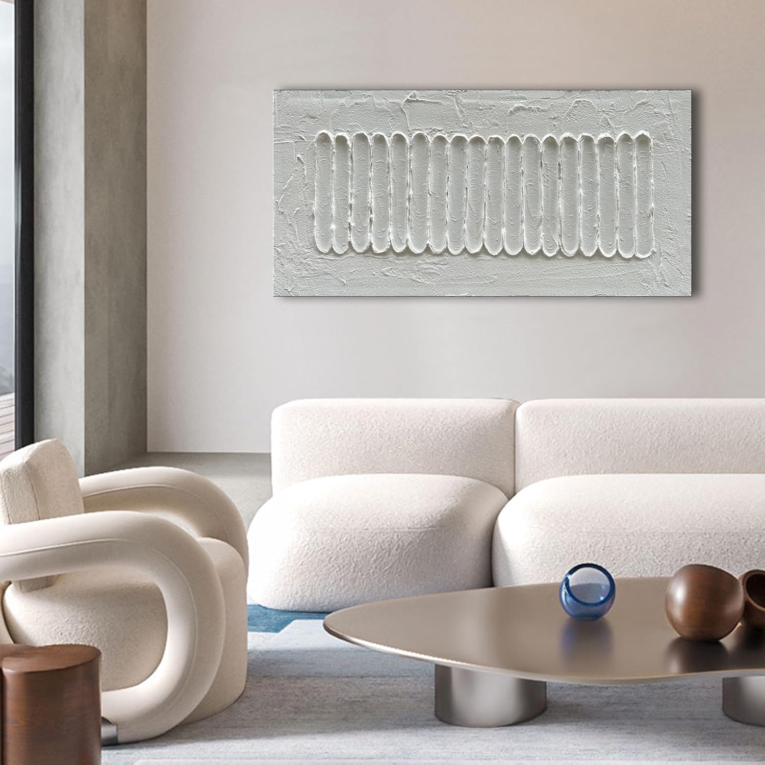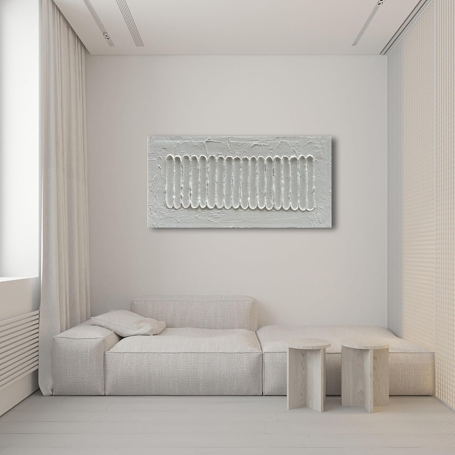 NANKAI Art 24x48 Inchs White Minimalist Art Oil Painting Hand Painted Thick Texture Abstract Painting Home Wall Decorative Art