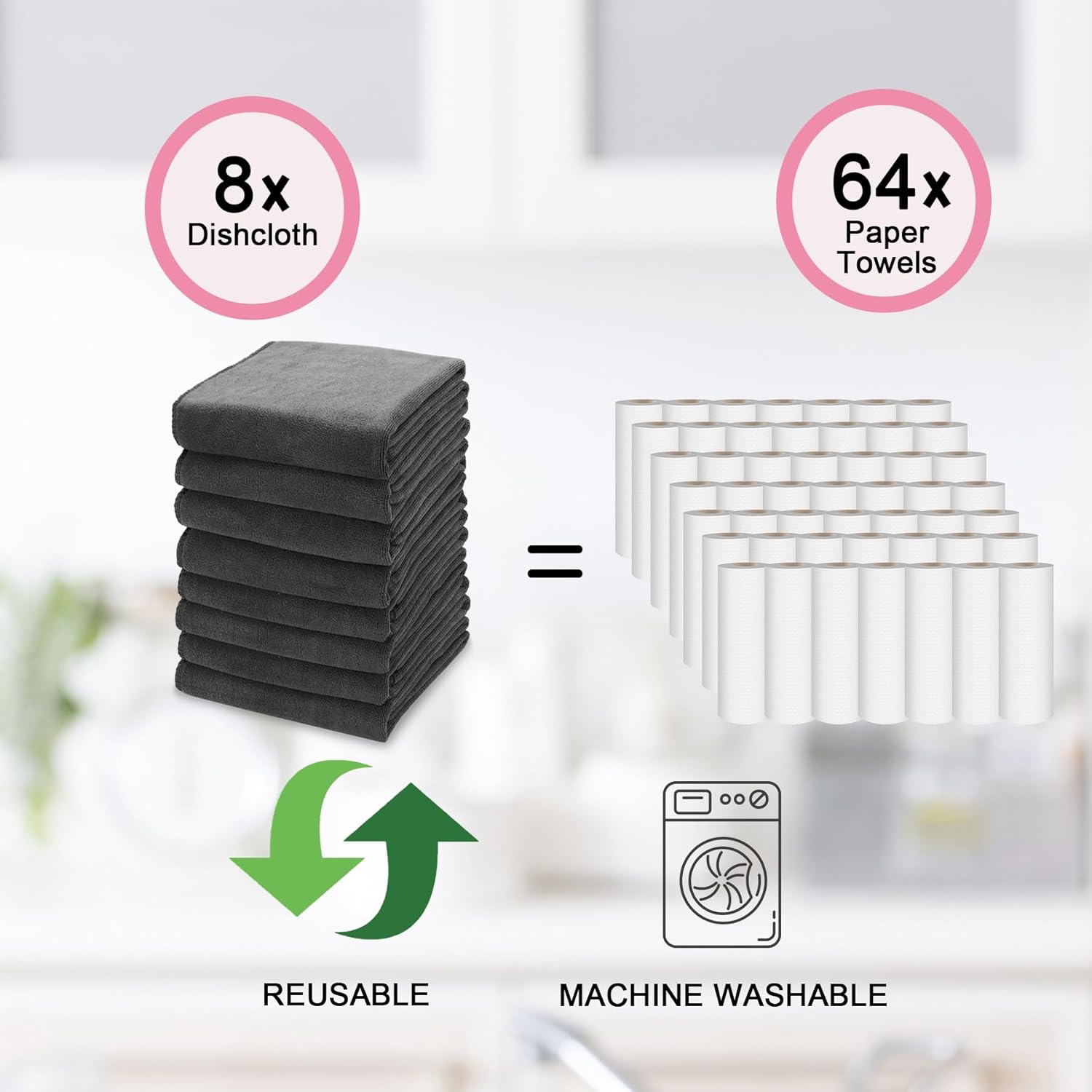 kimteny 13x28 Inches Kitchen Cloth Dish Towels, 400 GSM Premium Dishcloths, Super Absorbent Coral Velvet Microfiber Cleaning Cloths, Fast Drying Rags for Washing Dishes (8 Pack, Dark Grey)
