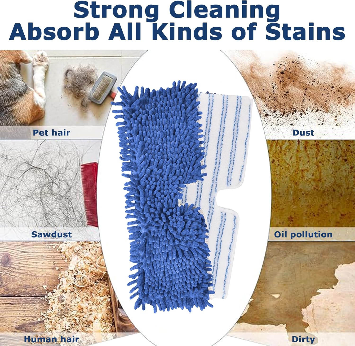 - Material: One side is chenille for dry dusting and cleaning, and the other side is microfiber-faced polyester which is suitable for deep cleaning stains and dust in any area. It has strong water absorption and hair stains are not easy to fall off