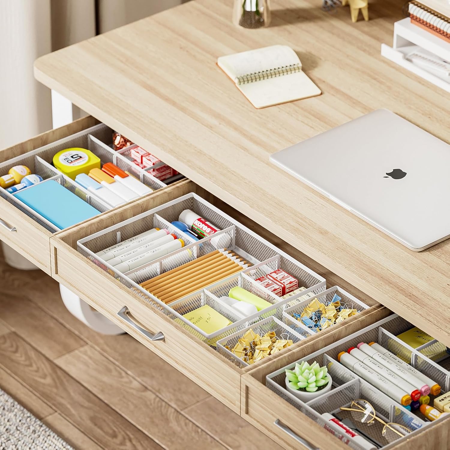 - 【Customizable Compartments Size】The 6 removable dividers can be combined in any size you need to fit different stationery such as pens, erasers, highlighters, notes, staplers, tapes, clips or other supplies.