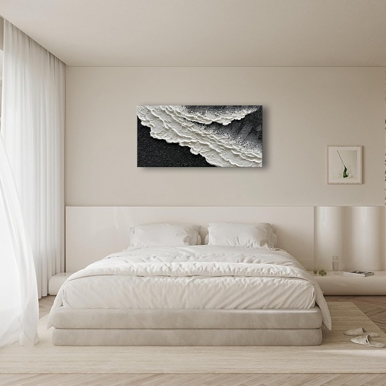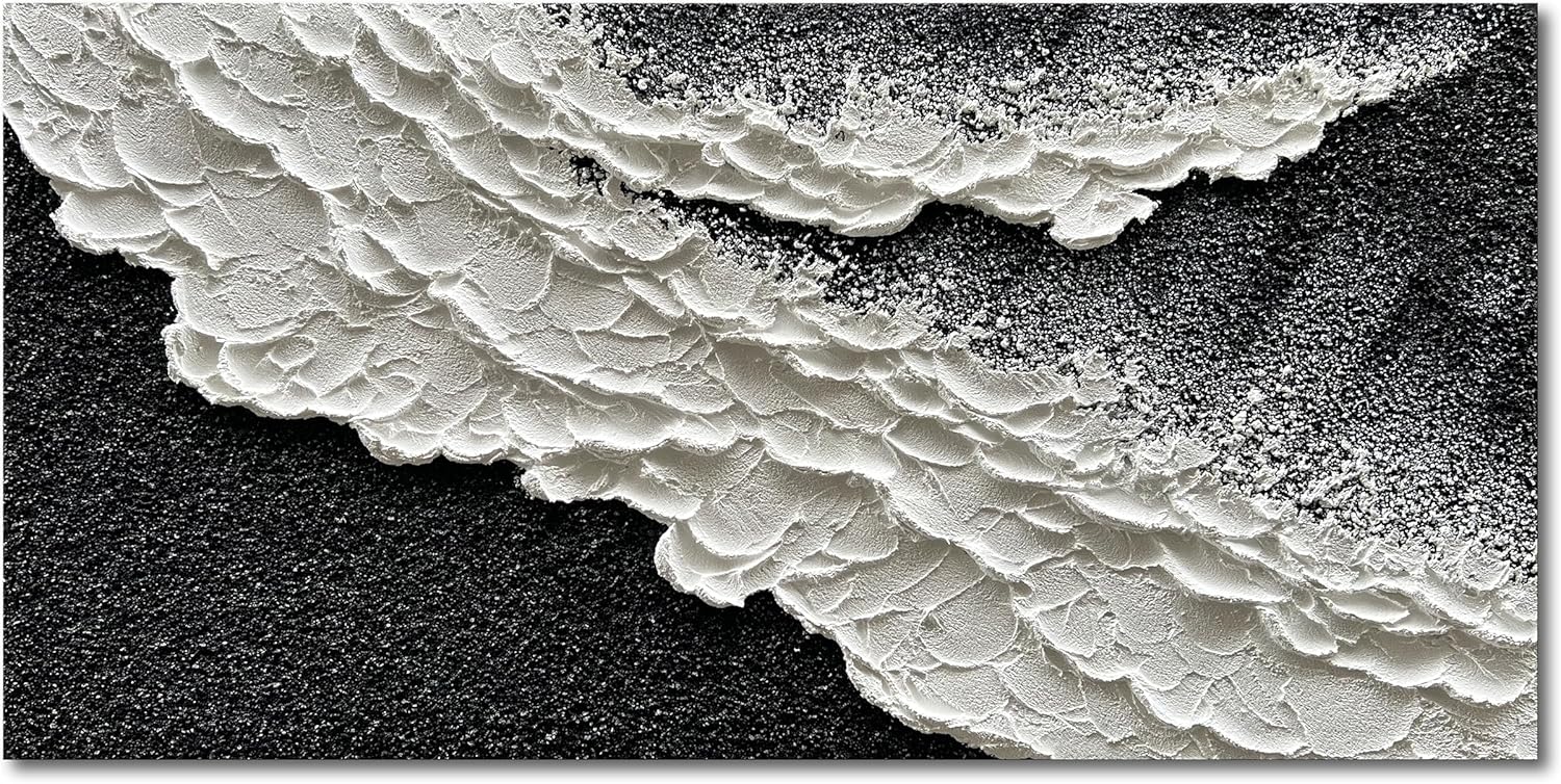 NANKAI 24x48 Inch Hand Painted 3D Ocean Wave Landscape Oil Painting Black and White Abstract Canvas Art Mural Family Wall Decoration art