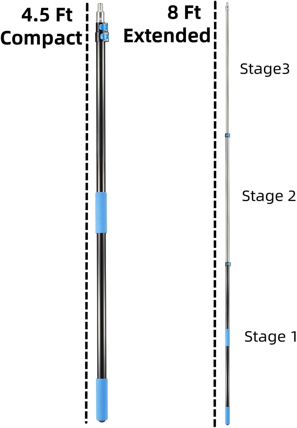 - Comes with a telescopic pole which is made of lightweight sturdy aluminum and features easy flip-tab lock mechanism for adjusting to any custon length from 5 to 8ft.