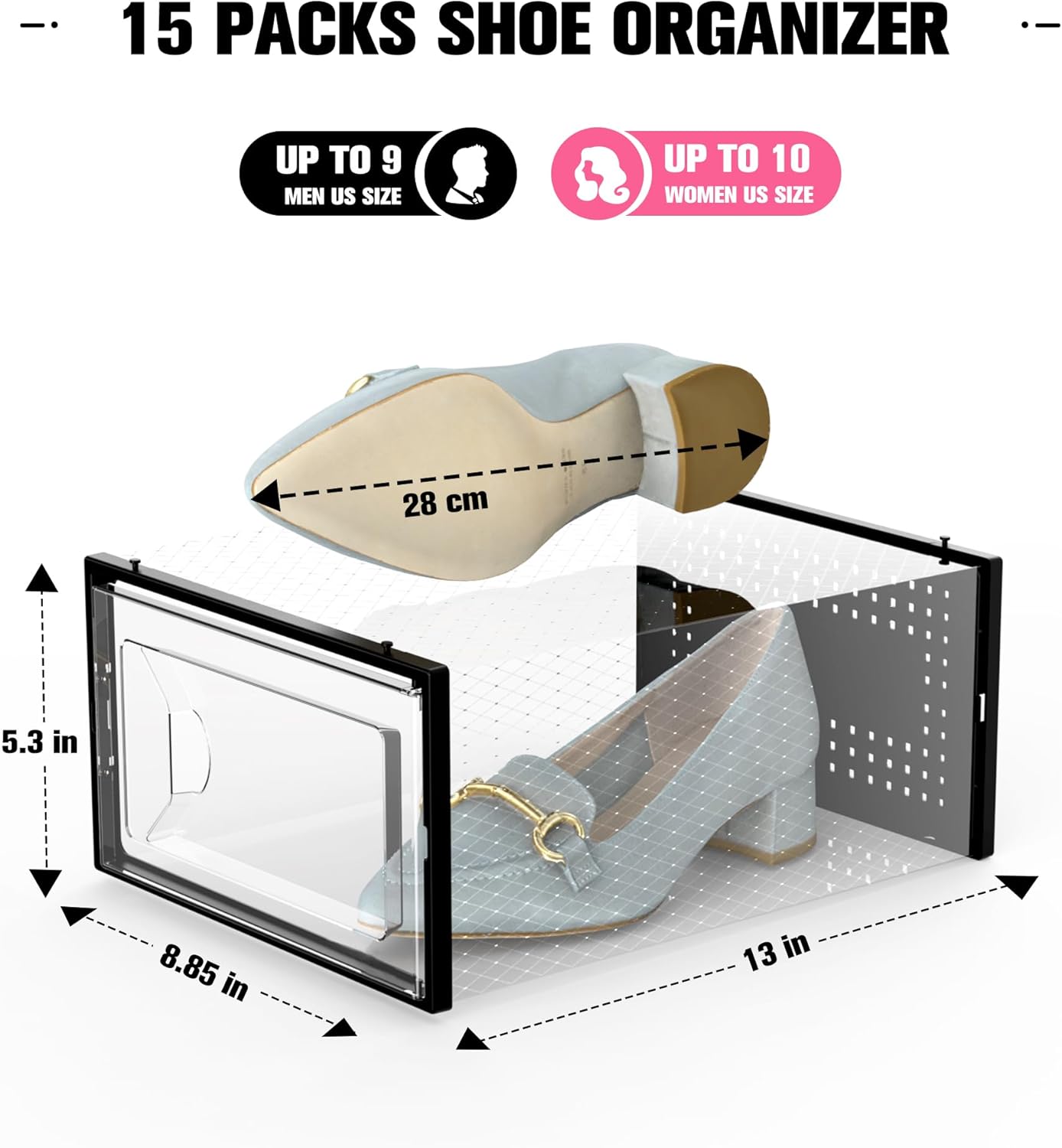- Large Quantity-Set of 15: A set of 15 shoe Storage boxes, meeting your home storage needs and providing you with an efficient storage solution