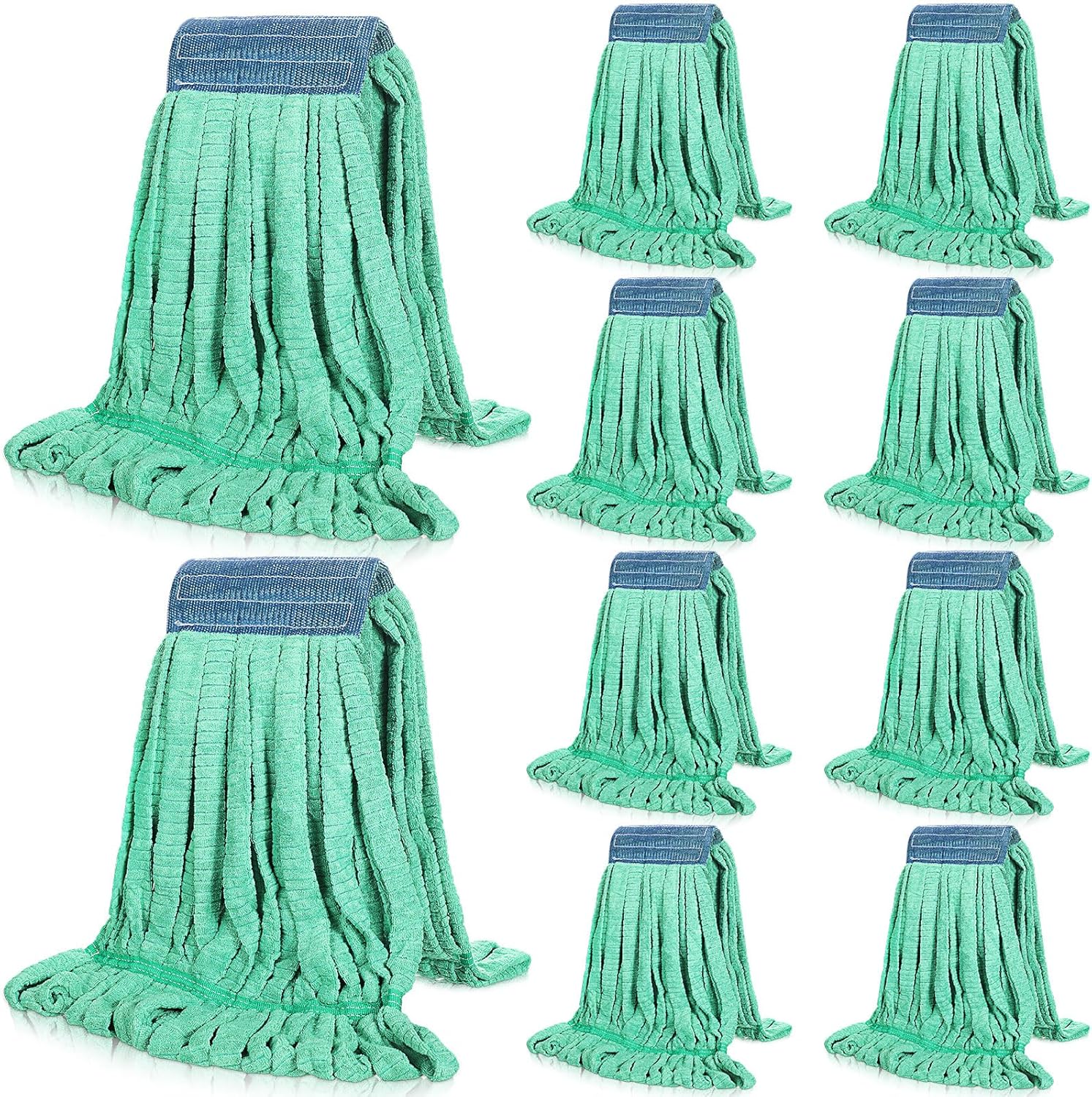 Lallisa 10 Pcs Commercial Mop Head Replacement Tube Microfiber Mop Heads for Floor Cleaning Industrial Mop Heads Looped End Wet Mop Head Refill for Home Commercial Industrial Use (Green,18 oz)