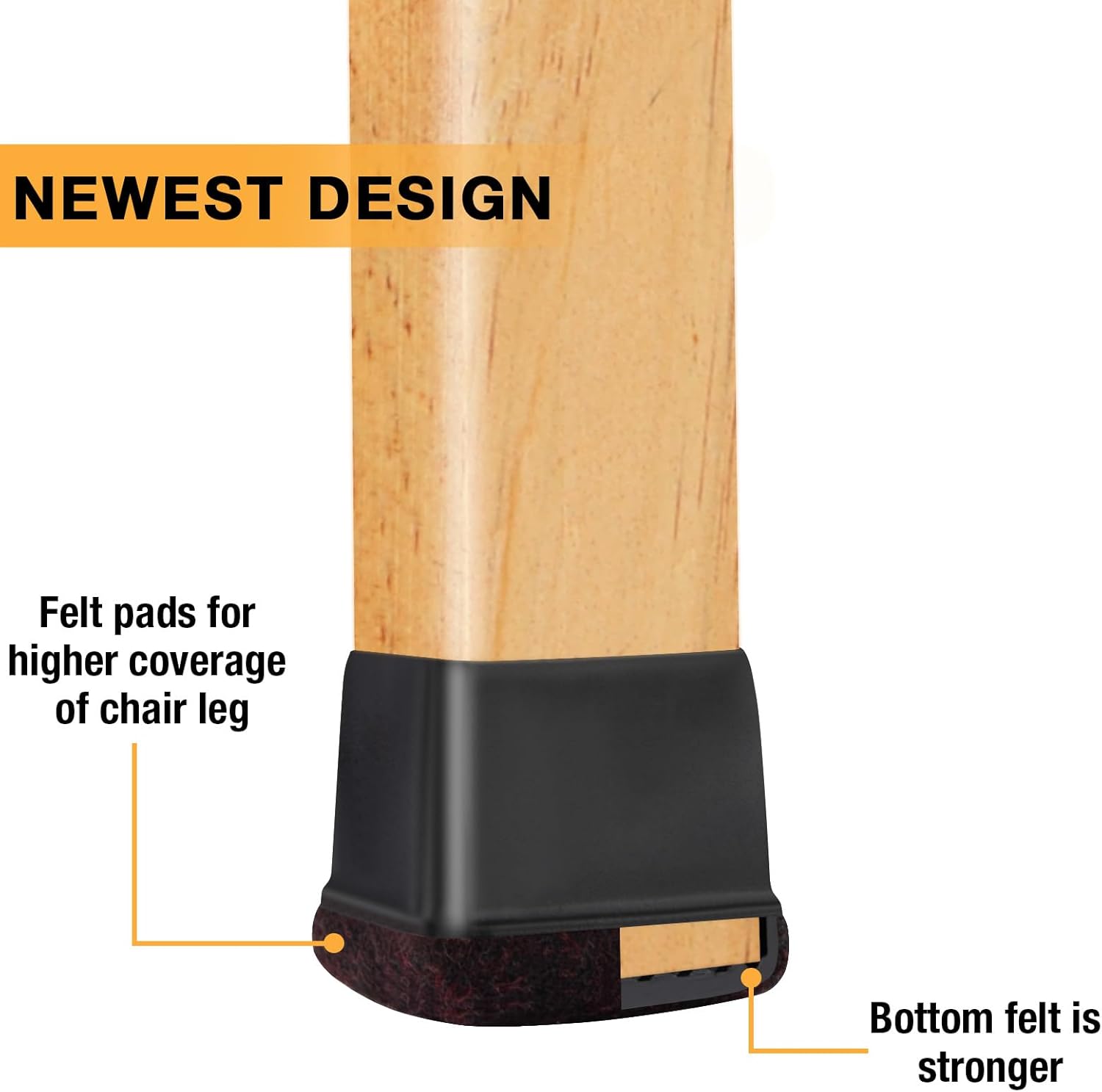 - 【Upgrade New Design】: 360° full felt pad bottom wrapped, which helps the felt bottom be able to touch the floor at any angle, preventing scratching the floor. Our chair leg floor protectors do not use gel. The bottom felt pad and the silicone chair leg floor protectors are integrated with a high-pressure machine to ensure that they will never fall off.