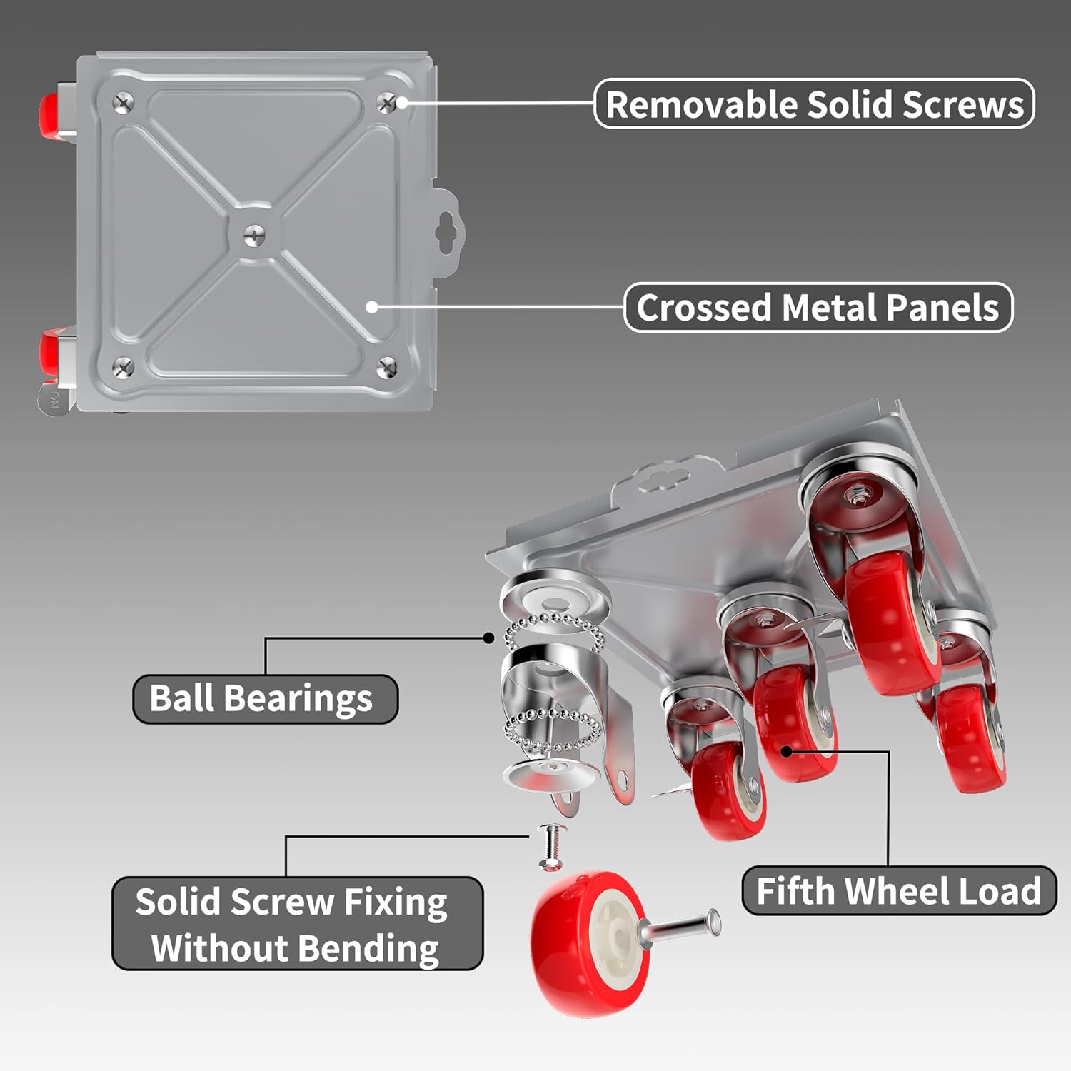 - [NEW UPGRADE]: Our furniture dolly with wheels features a larger load-bearing panel and a fifth wheel for increased capacity.Its L-shaped edge prevents slipping during handling.With two locking switches for secure fixation,an anti-pressure handle tow hook safeguards fingers.An elastic rope,paired with the dolly's tow hook,keeps items securely in place while moving.