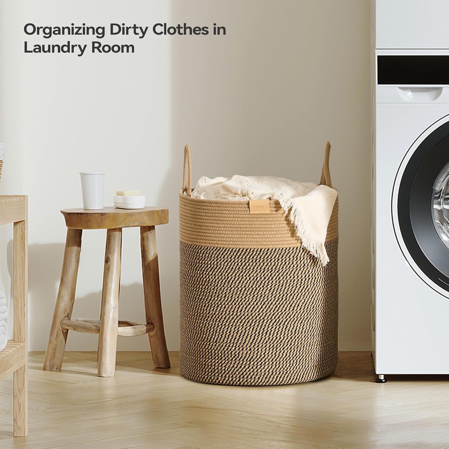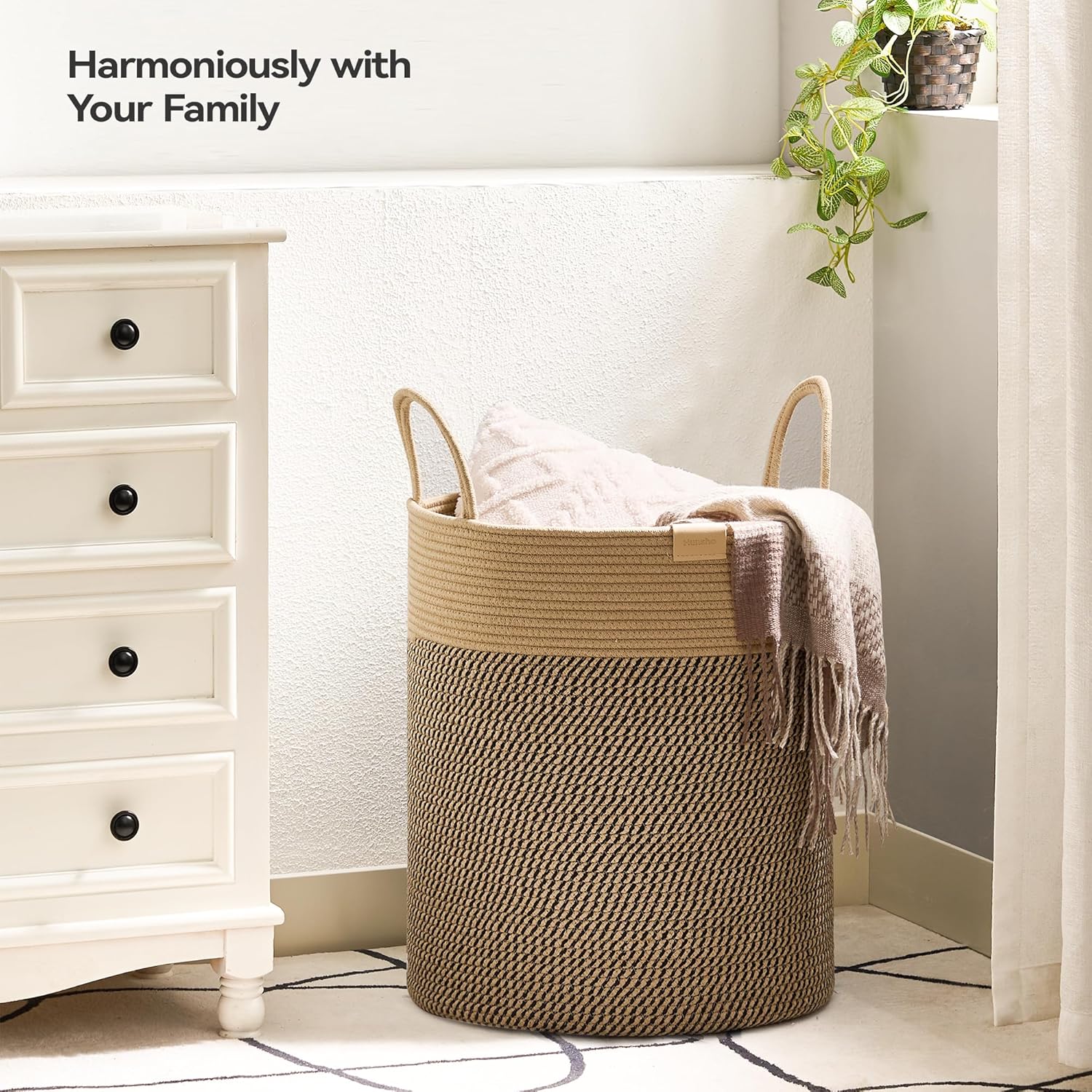 Laundry Hamper 62L,Large Laundry Basket for Clothes,Decorative Storage Basket for Blankets,Cotton Rope Woven basket for bedroom,Dark Brown
