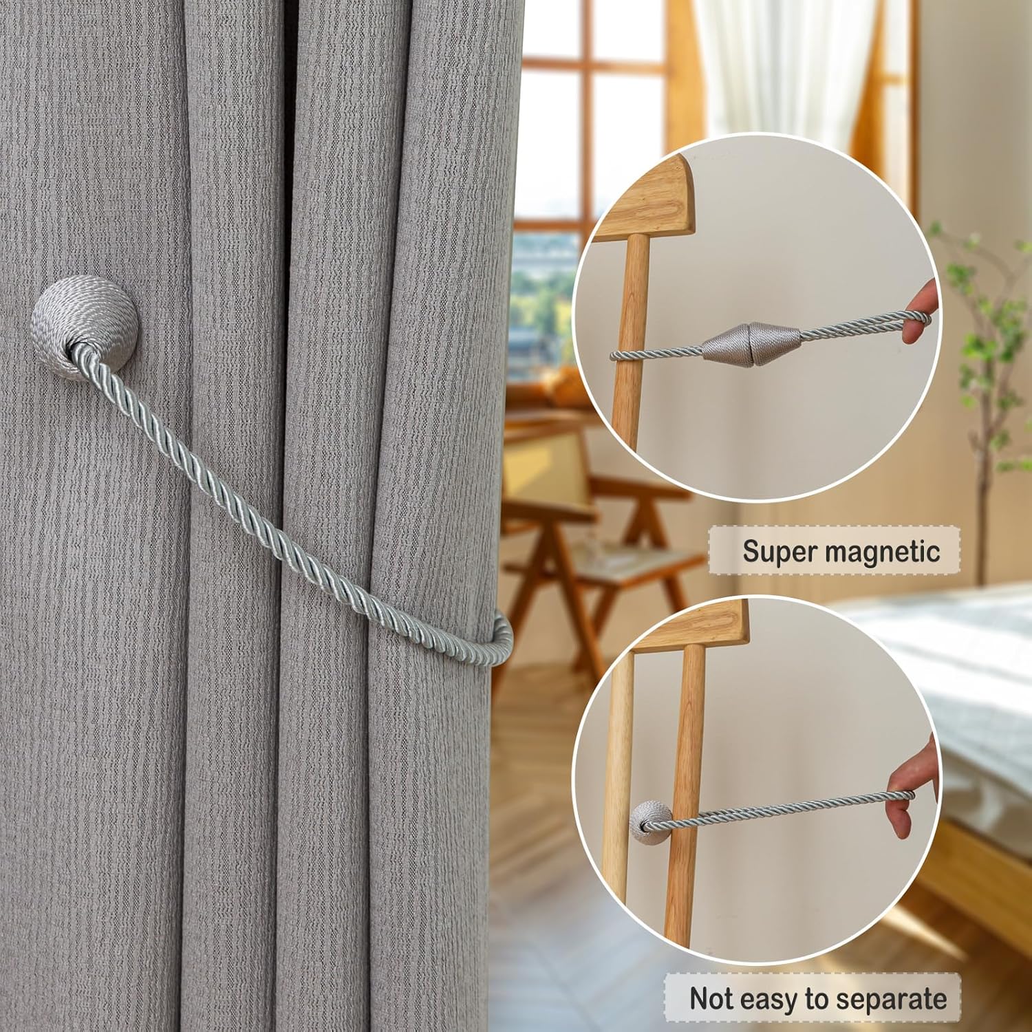 - High-quality materials: Our curtain tiebacks are made of high-strength polyester. Curtain tiebacks with the latest upgrade magnetic design, Screw fixing does not fall off.