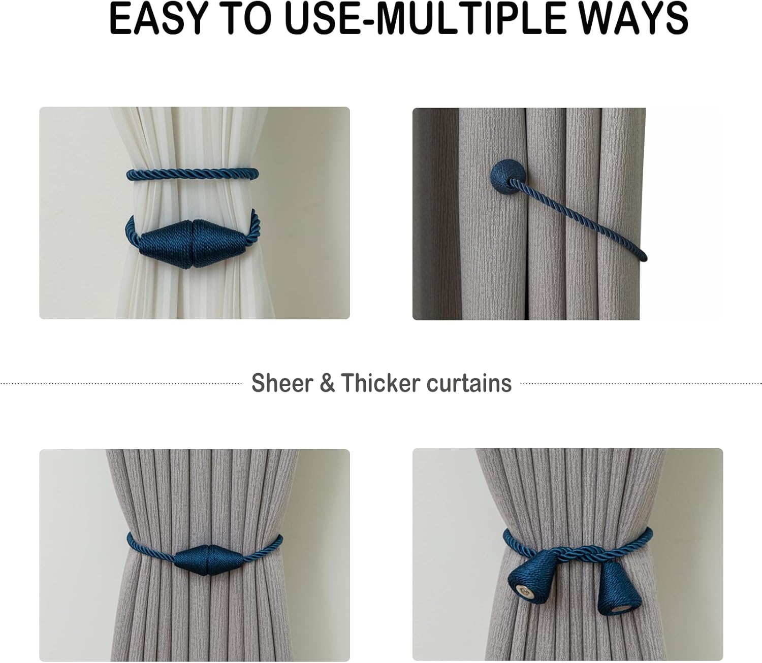 - High-quality materials: Our curtain tiebacks are made of high-strength polyester. Curtain tiebacks with the latest upgrade magnetic design, Screw fixing does not fall off.