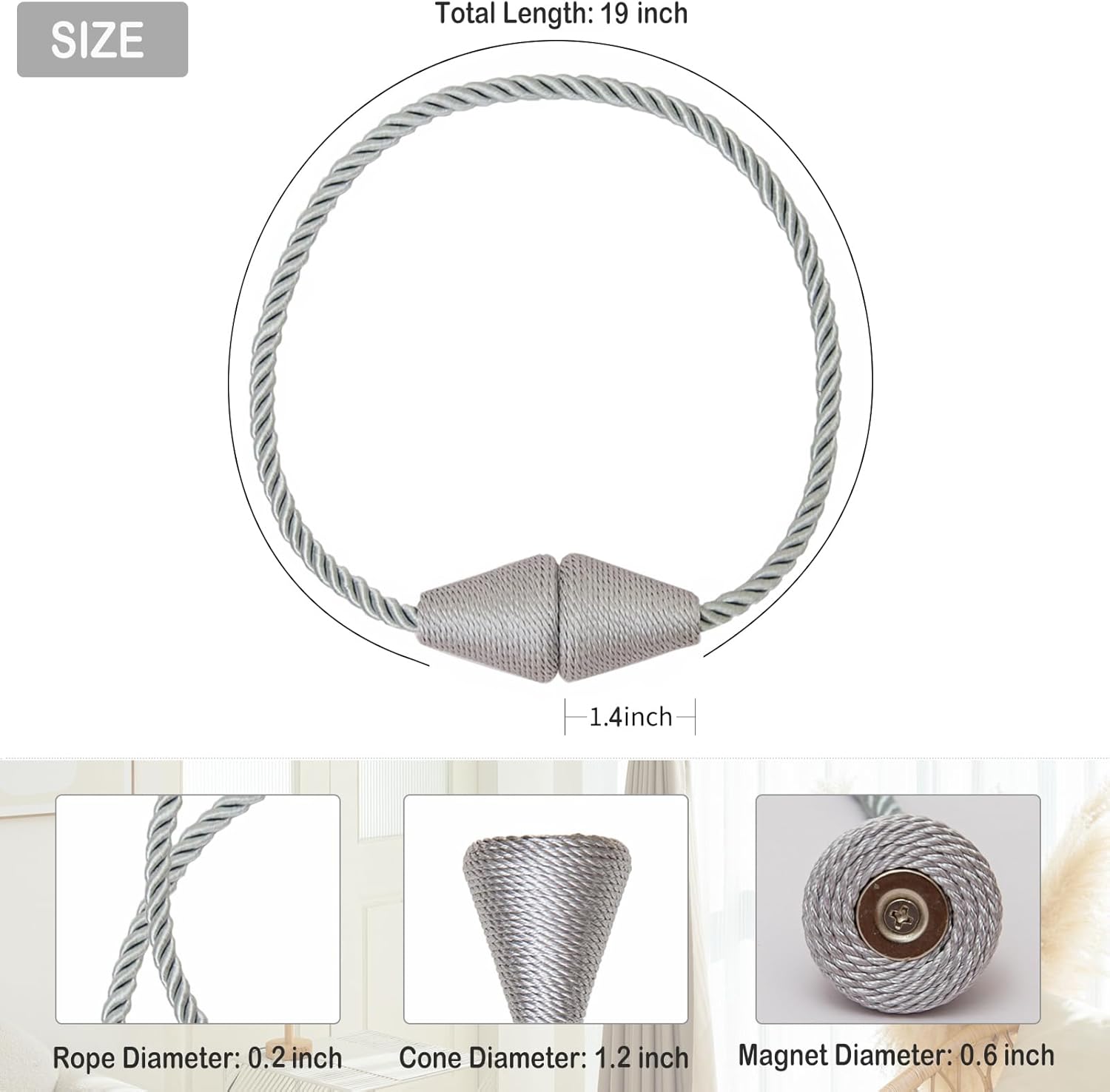 Magnetic Curtain Tiebacks 2 Pack Outdoor Rope Curtain Tie Backs Decorative Window Treatment Holdbacks for Home Decorative Curtain, Grey
