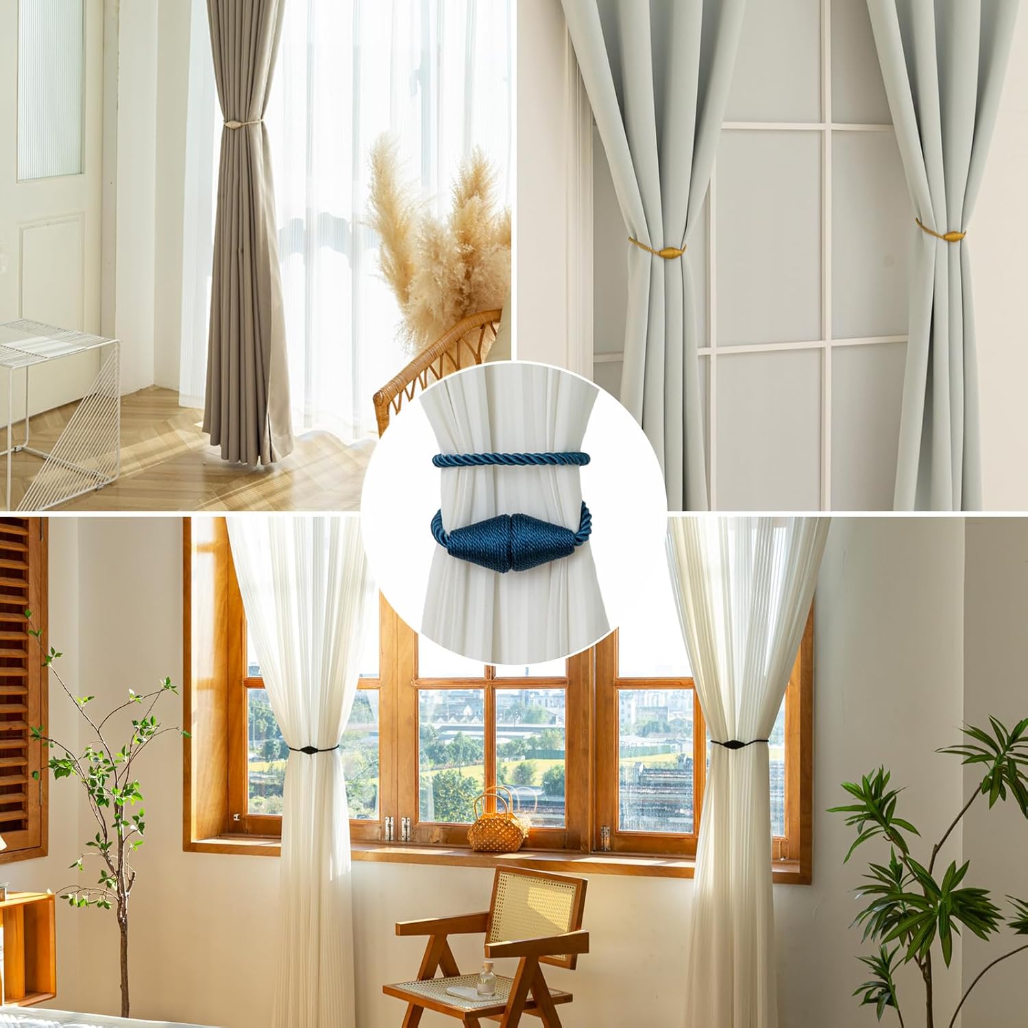 Magnetic Curtain Tiebacks 2 Pack Outdoor Rope Curtain Tie Backs Decorative Window Treatment Holdbacks for Home Decorative Curtain, Blue