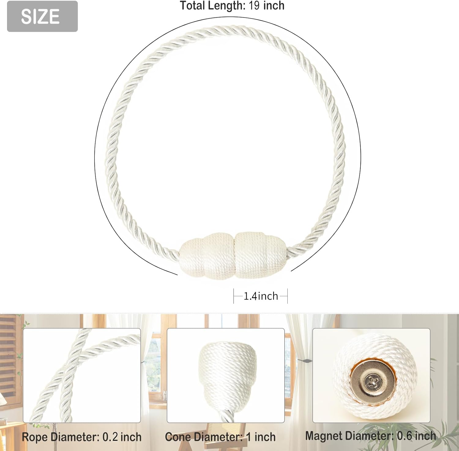 Magnetic Curtain Tiebacks Rope Curtain Tie Backs for Curtains 4 Pack Curtain Holders for Drapes Decorative Window Curtain Holdbacks, White
