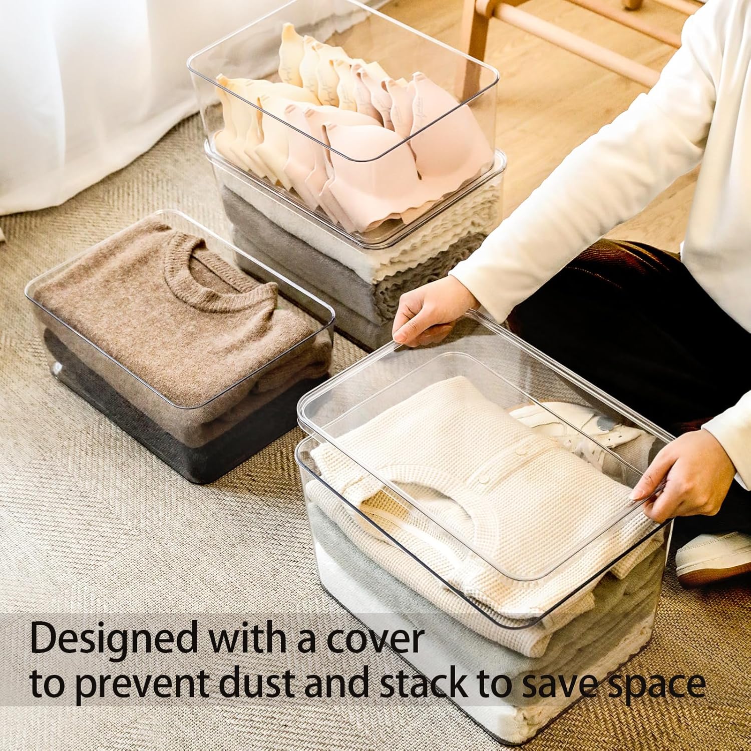 Lidded Plastic Storage Bins Set Clear Desk Basket Box Organizer Kitchen Container Clothes Laundry Closet Cabinet Shelf, Organization and Storage for Shelves Office Bathroom(clear 3XL+2M)
