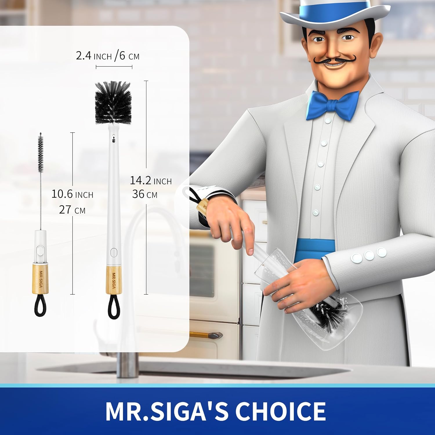 - 2-in-1 Versatile Cleaning Brush: The MR.SIGA water bottle brush and straw cleaner brush combines two essential cleaning tools into one sleek design. Effortlessly switch between cleaning wide bottles and narrow straws with a simple press and pull motion, revealing the hidden straw brush nestled within the handle.