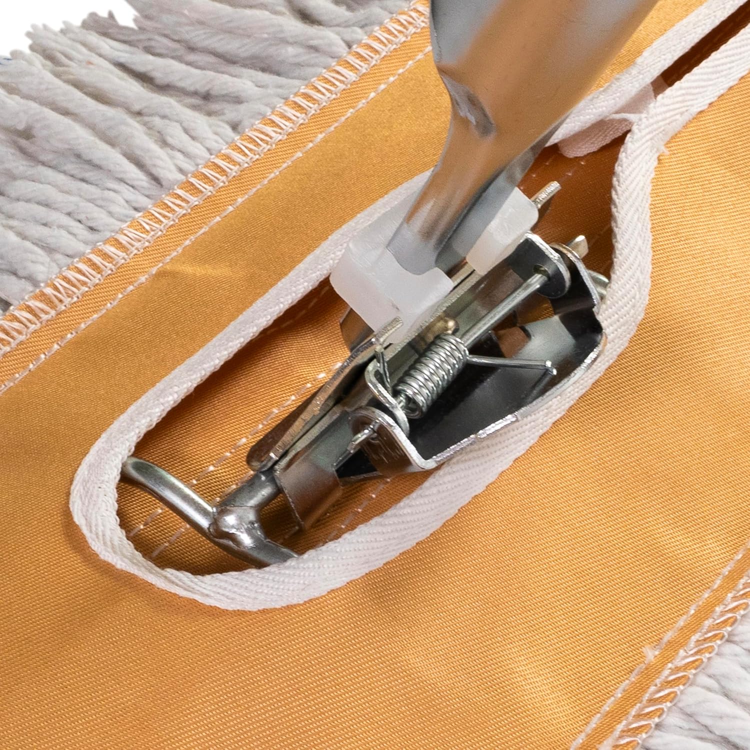- The ergonomic aluminum handle (55”) allows you to hold the mop easily while the large cotton mop head picks up dirt, dust, pet hair, and debris instantly - reduces stress on your hands and wrists.