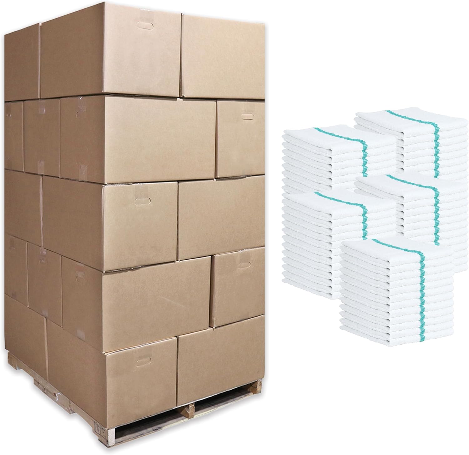Arkwright Qwick Wick Bar Mop Towels Bulk - (Pallet of 4200) 100% Cotton Quick Dry, Super Absorbent Multipurpose Cleaning Rags for Restaurants, Kitchen, Bathroom, Hotel, 16 x 19 in, Green Stripe