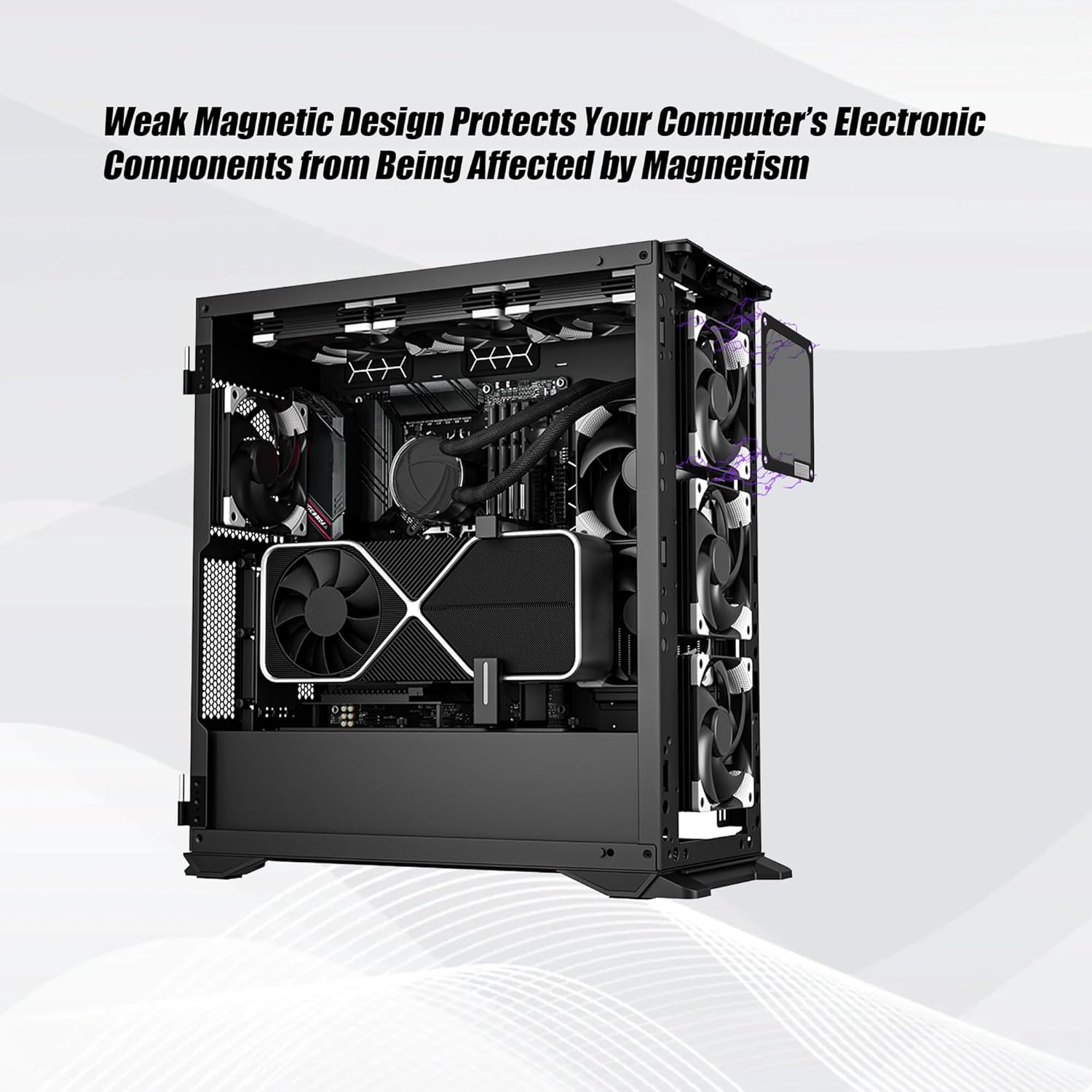 - 【NEW DESIGN】Brand new upgrade, V4.0 PC dust filter. Different from the traditional single-sided design, Use Double-Sided frame, High content PVC material, No deformation at high temperature, fire retardant. PC Case Fan Dust Filter with Single Magnetic , without any tools or screws, Easy to install and disassemble.