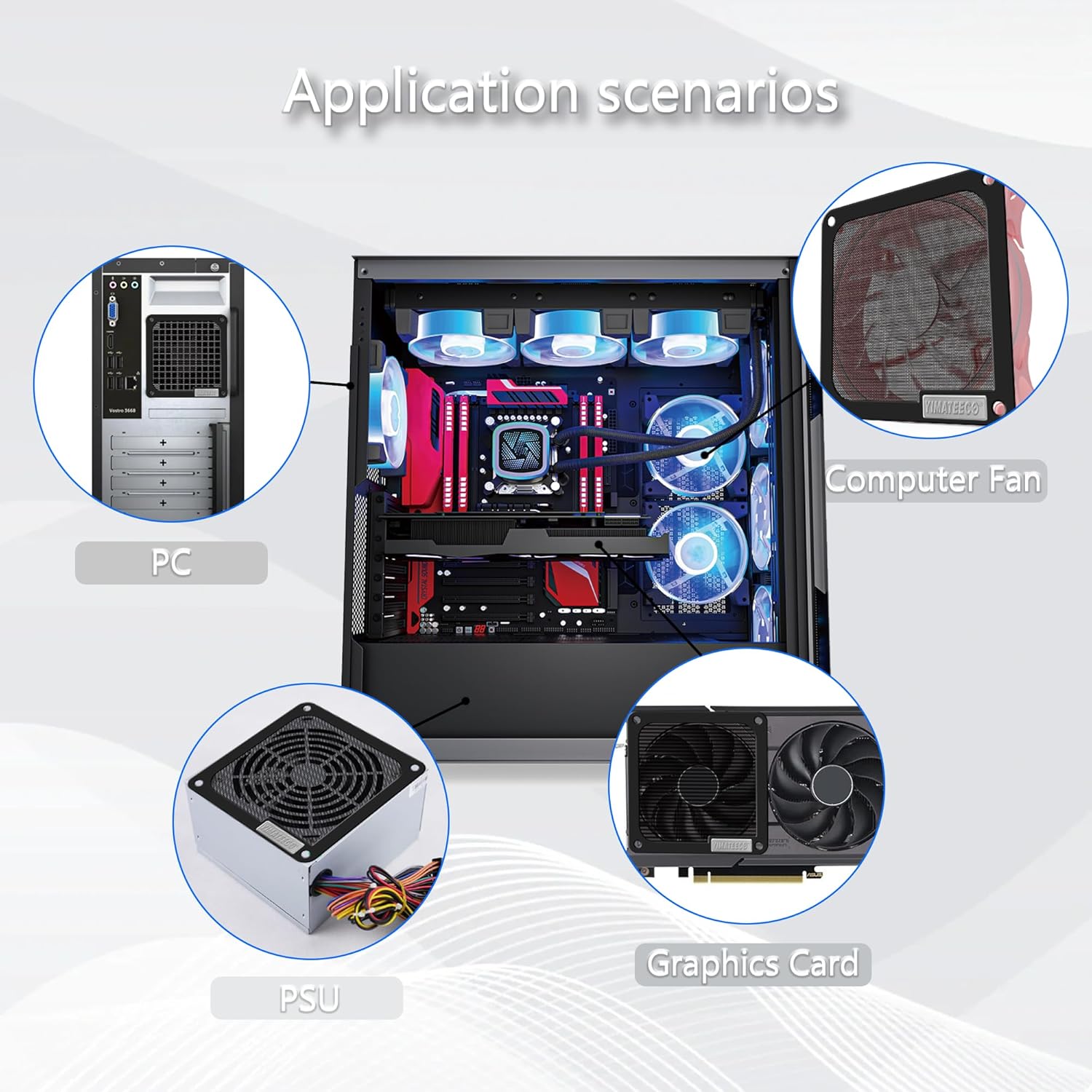 - 【PRODUCT PERFORMANCE】The ultra-small aperture of 0.3mm (50 Mesh) can not only effectively prevent cats, dogs, rabbits and other pet hair from being involved in the casing and cause a short circuit, but also does not affect the ventilation. Reduce fan noise while blocking all kinds of tiny dust, pet hair, etc.