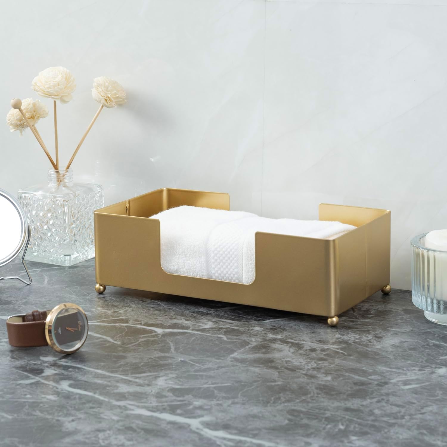MyGift Paper Towel Holder Modern Gold-Tone Metal Tabletop Folded Paper Hand Towel Holder for Guest Bathroom, Commercial Countertop Tissue Paper Dispenser Tray for Trfold, C-Fold, Z-Fold