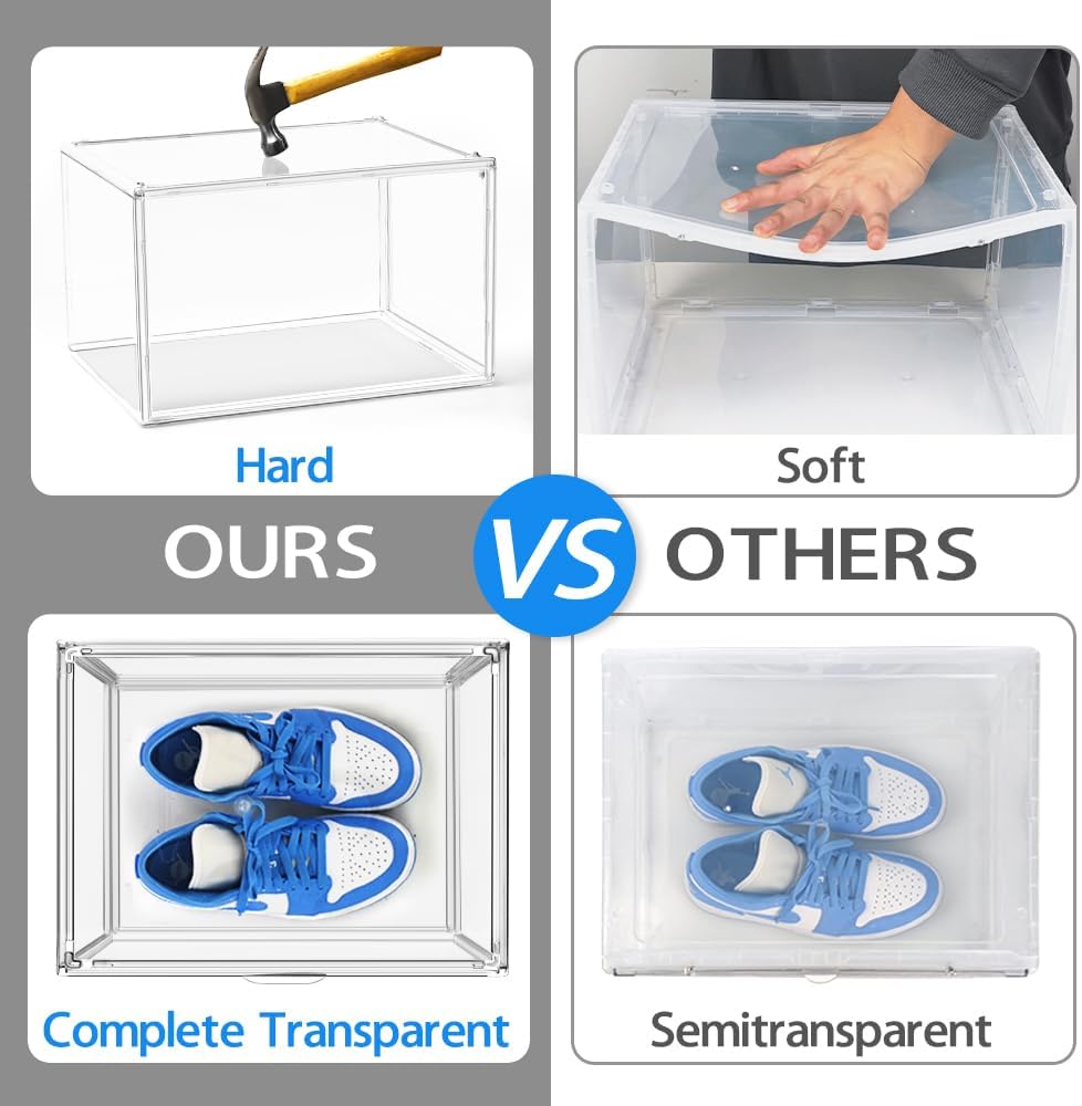 10 Pack Acrylic Shoe Storage Box Clear Plastic Stackable Acrylic Display Case with Magnetic Door Sneaker Storage for Sneakerheads Large Hat Shoe Boxes, Fit up to US Size 13