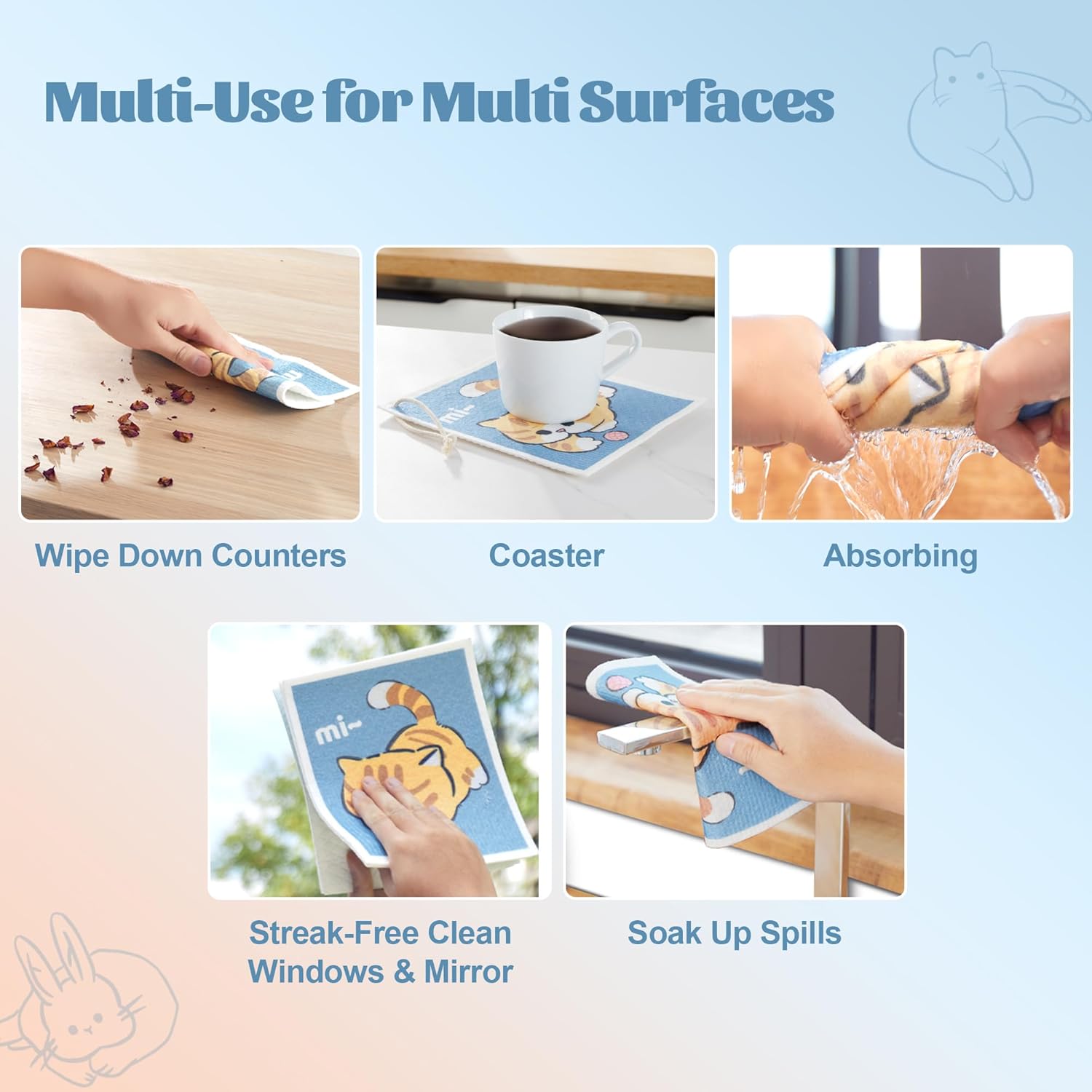 - [Nature & Reusable] The Cleaning Cloth are made of cellulose fiber, which help them keep good shape without deformation or falling apart even after long-time uses. Perfect choice for durable and eco use!
