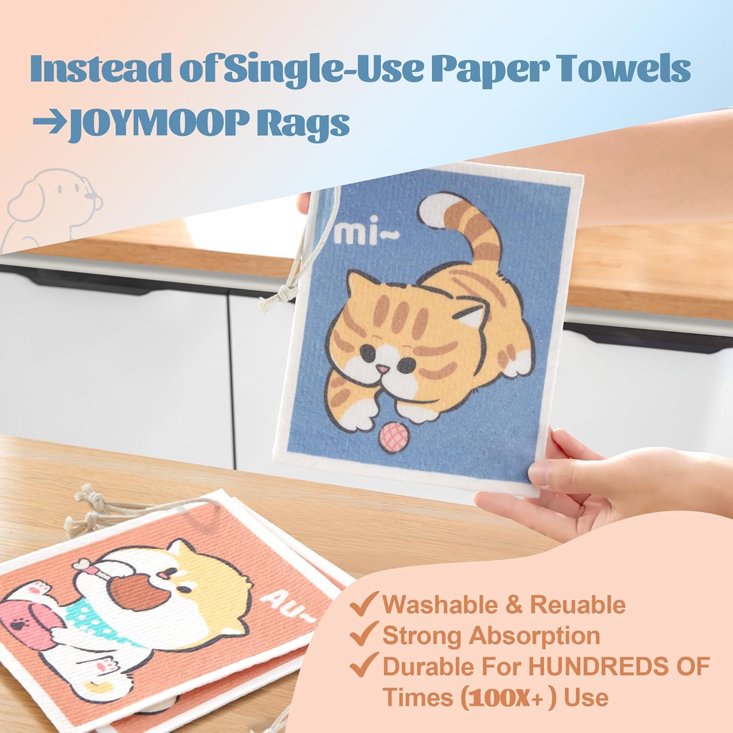 JOYMOOP Cartoon Cellulose Cleaning Cloth, Reusable Absorbent Dish Towels, Non-Scratch Washable Rags for Cookware, Kitchen and Household Cleaning - 6pcs, 6.7×7.9inch