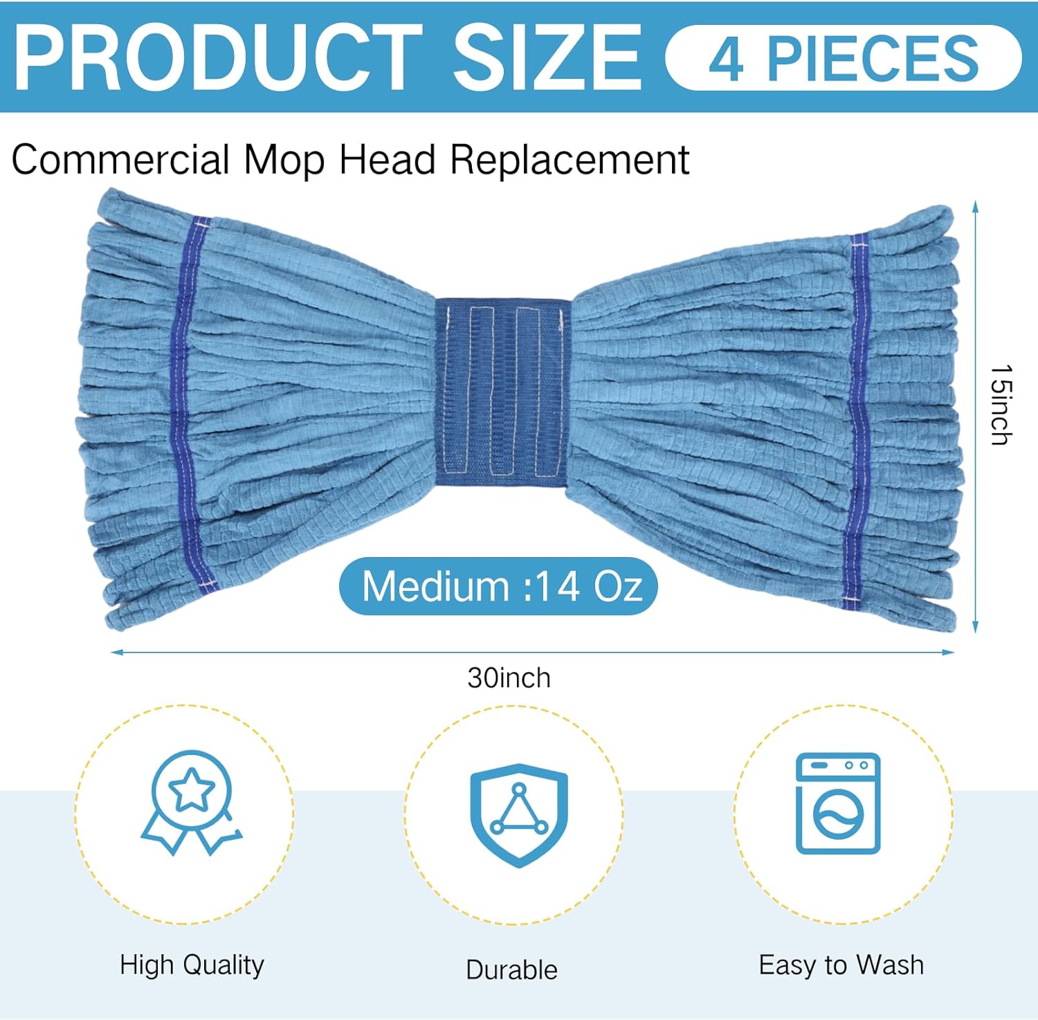 - Package List: the package contains 4 pieces of mop replacement heads, sufficient quantity for easy replacement, can fit your daily needs, make your work and living space become more clean and tidy; 14 ounces of medium mop with more water absorption, can clean a wider space and provide more efficient cleaning
