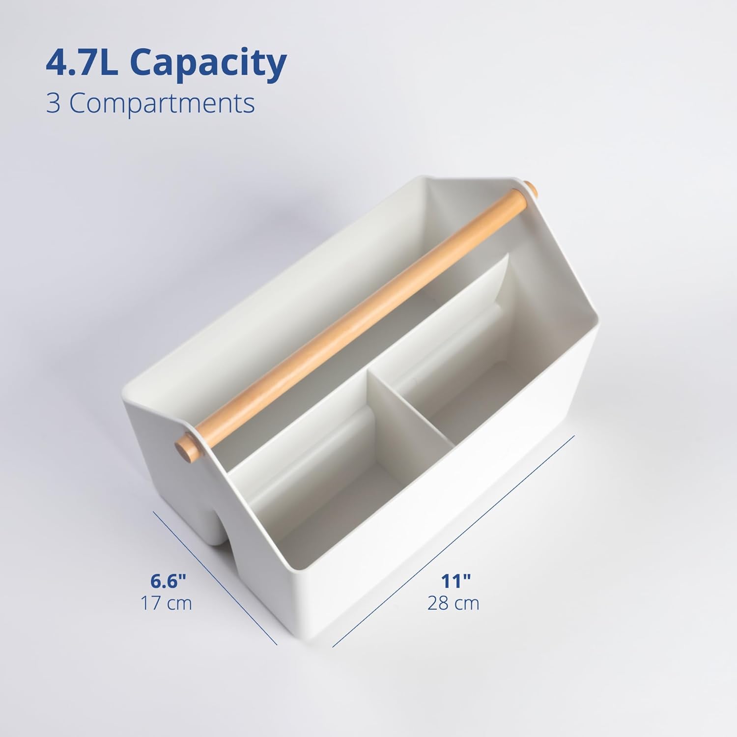 - Sturdy Wooden Handle - Features a sturdy wooden handle for easy carrying and access, making them an ideal kitchen caddy, kids art supply storage organizer, and makeup storage organizer.