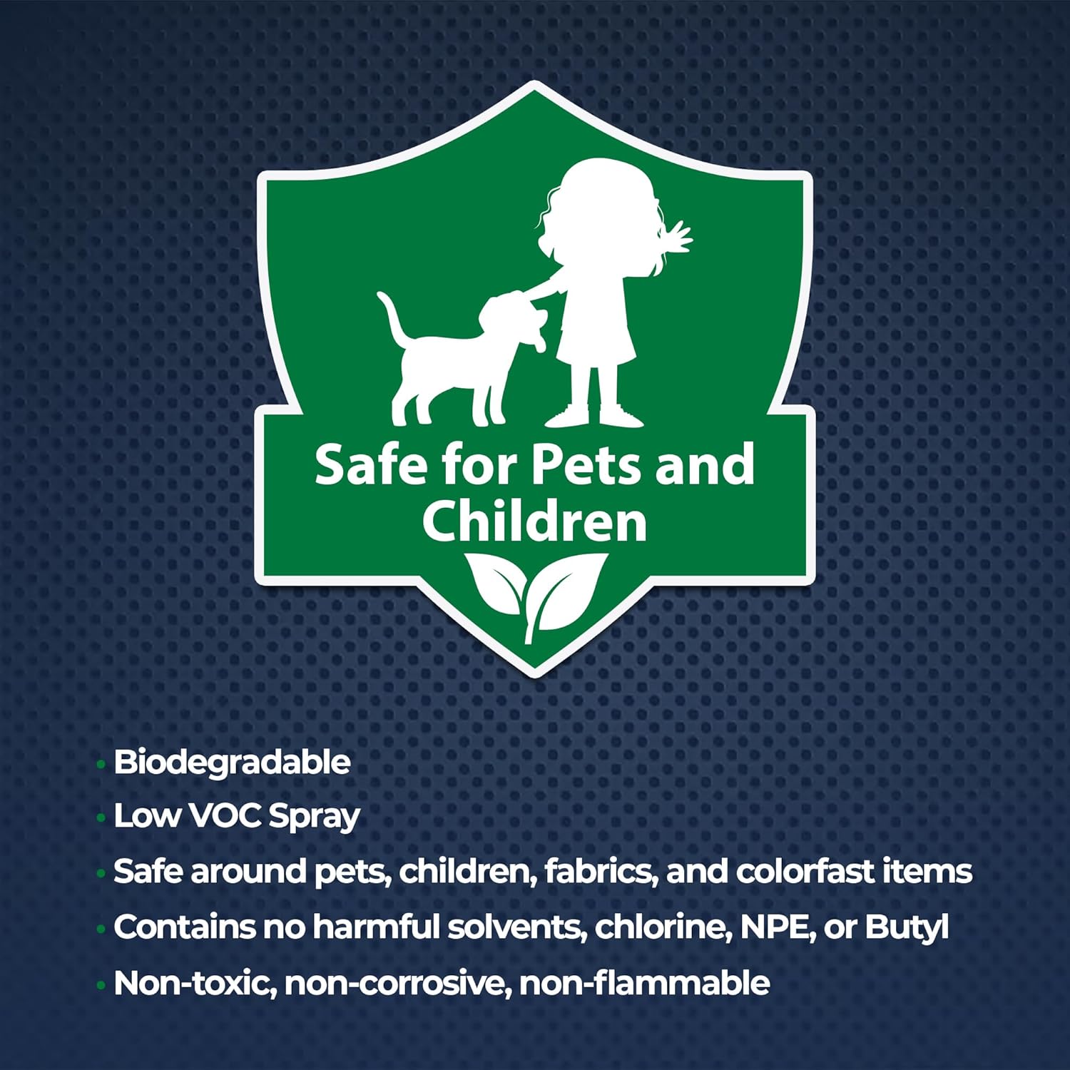 - SAFE AND BIODEGRADABLE: This biodegradable, low VOC spray is safe around pets and children, contains no harmful chemicals, solvents, chlorine, NPE, fragrances, dyes, or butyl, is non-toxic, non-corrosive, non-flammable, and requires no PPE