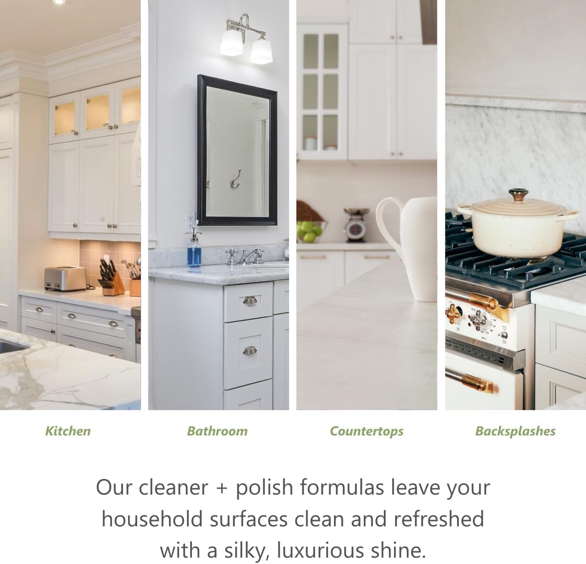 - EFFECTIVE FORMULAS - Unlike competitors who try to mix a polish and a cleaner into one product, we have separated the two and offer MORE Stone & Quartz Cleaner + Protector and MORE Stone & Quartz Polish in this twin pack. Because these products are separate, you can be sure your surface gets cleaned and polished as each spray has their own effective ingredients.