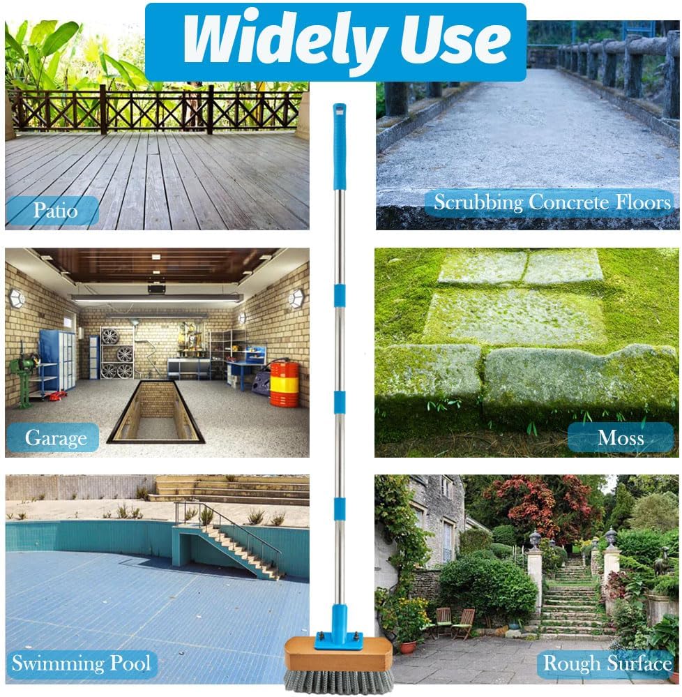 - WIDELY USE: Unlike plastic brushes on the market, our heavy-duty stainless steel brush is specifically designed to remove stubborn stains and moss. Specially suitable for scrubbing concrete floors, swimming pool, sidewalk, courtyards, deck, garden, garage, restaurant, grout, patio and rough surface