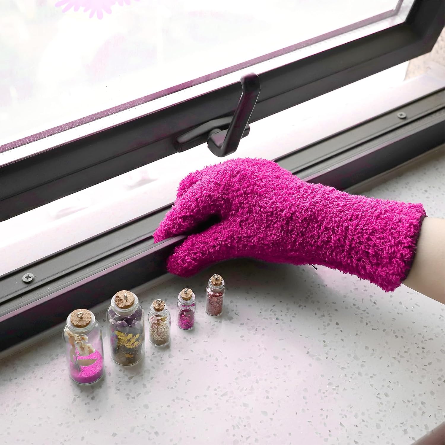 Patelai 2 Pairs Microfiber Gloves for plants Dusting Cleaning Glove Mittens House Cars Blinds Dusting(Pink, Rose Red, Large)