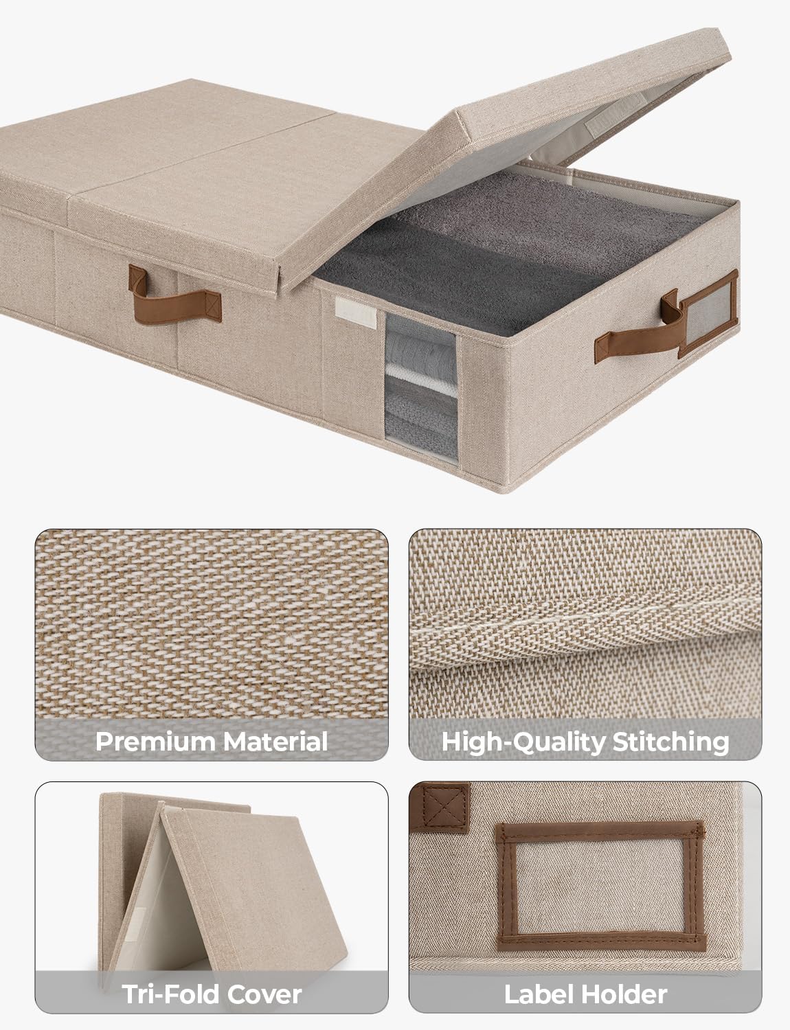 - Foldable: The lid of this underbed organizer can be folded into 3 parts, so the contents can be accessed from both sides for convenience. These storage boxes can also be folded and stored easily when not in use.