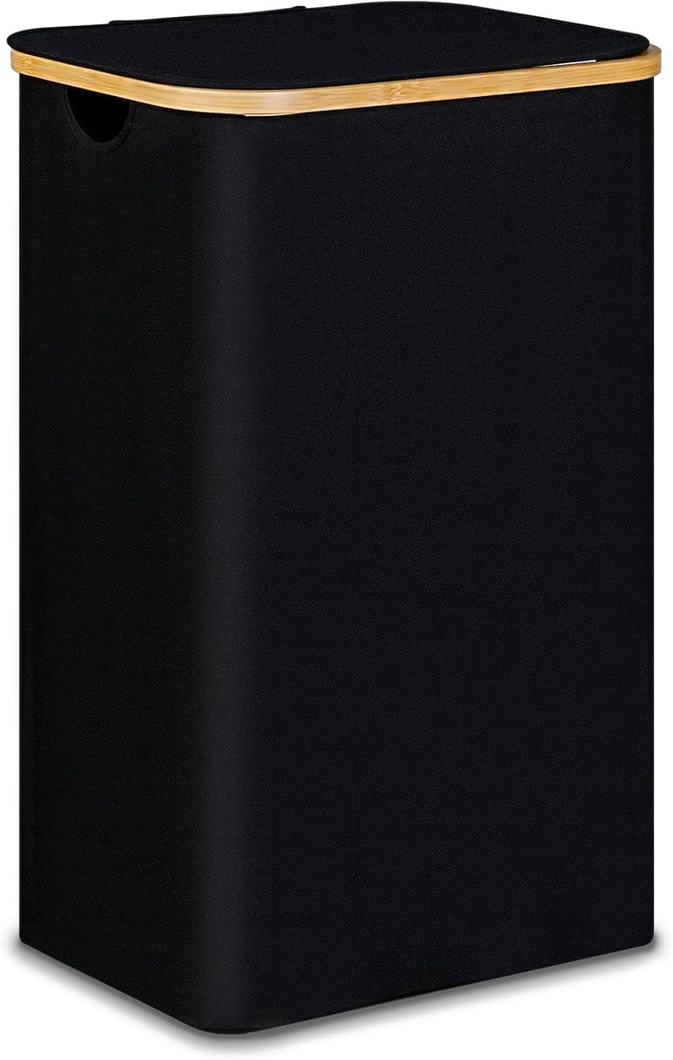 100L Laundry Hamper with Lid, Lagre Basket with Bamboo Handles,Foldable Clothes Hamper Tall Dirty Laundry Basket for Clothes Toys Towels Organizing,Black
