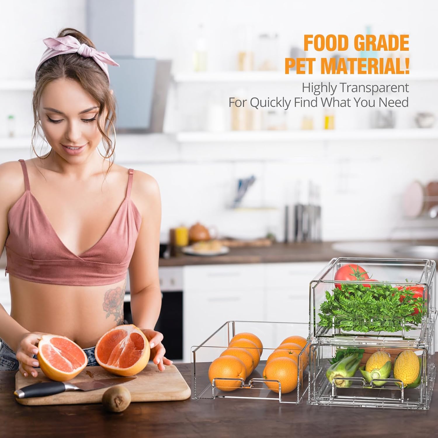 - AVOIDING WASTE FOOD AND SIMPLIFY MEAL PREP : Clear refrigerator organizer bins allow you to easily see what's inside, no food wasted because you can't see it. keeping your go-to ingredients like onions, garlic, and vegetables in these pull out fridge organizer drawers. Prepare dinner with ease and efficiency by having everything you need at your fingertips