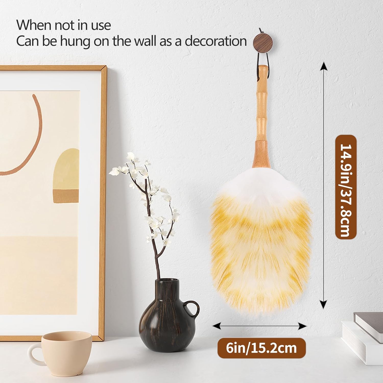 - HIGH QUALITY LAMBWOOLS FEATHER DUSTER: The integrated wooden handle making the connection between the wools and the handle firmer and not easy to fall off. Handmade with carefully selected premium wool, each duster's quality is guaranteed and its appearance is exquisite