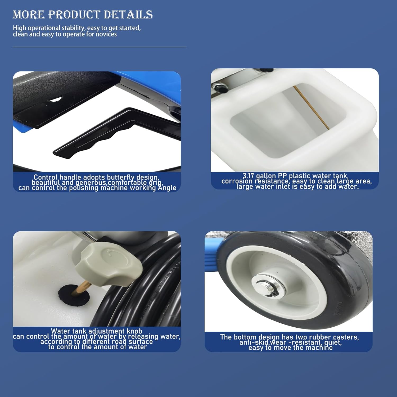 - Versatile Floor Cleaning - This multifunctional floor polisher is designed for polishing, waxing, refurbishing, and deep cleaning various floor surfaces including wood, marble, cement pavement, epoxy floor, rubber floor, and carpets.