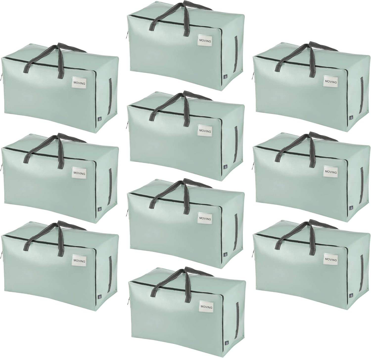 VENO 10 Pack Moving and Storage Bags, Heavy Duty, Alternative to Moving Boxes, Large Packing Totes Supplies for College Dorm Room with Zipper for Clothes, Wide Open Design (Shiny Light Green, 10 Pack)