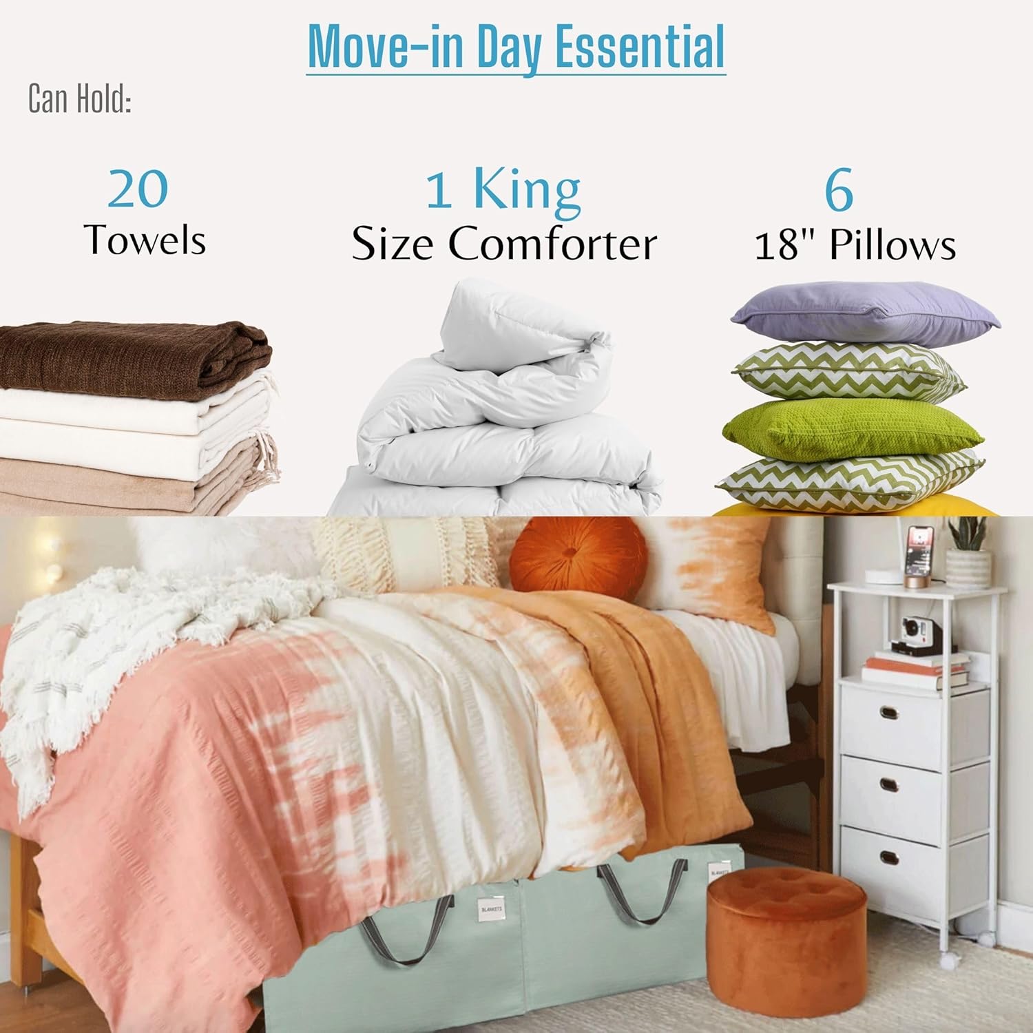 - Perfect for Moving and Storage – Whether you're moving to a new home or organizing seasonal storage, easily sort and identify your items, including blankets, bedding, comforters, towels, pillows, linens, and stuffed animals. Keep everything organized and accessible with ease!