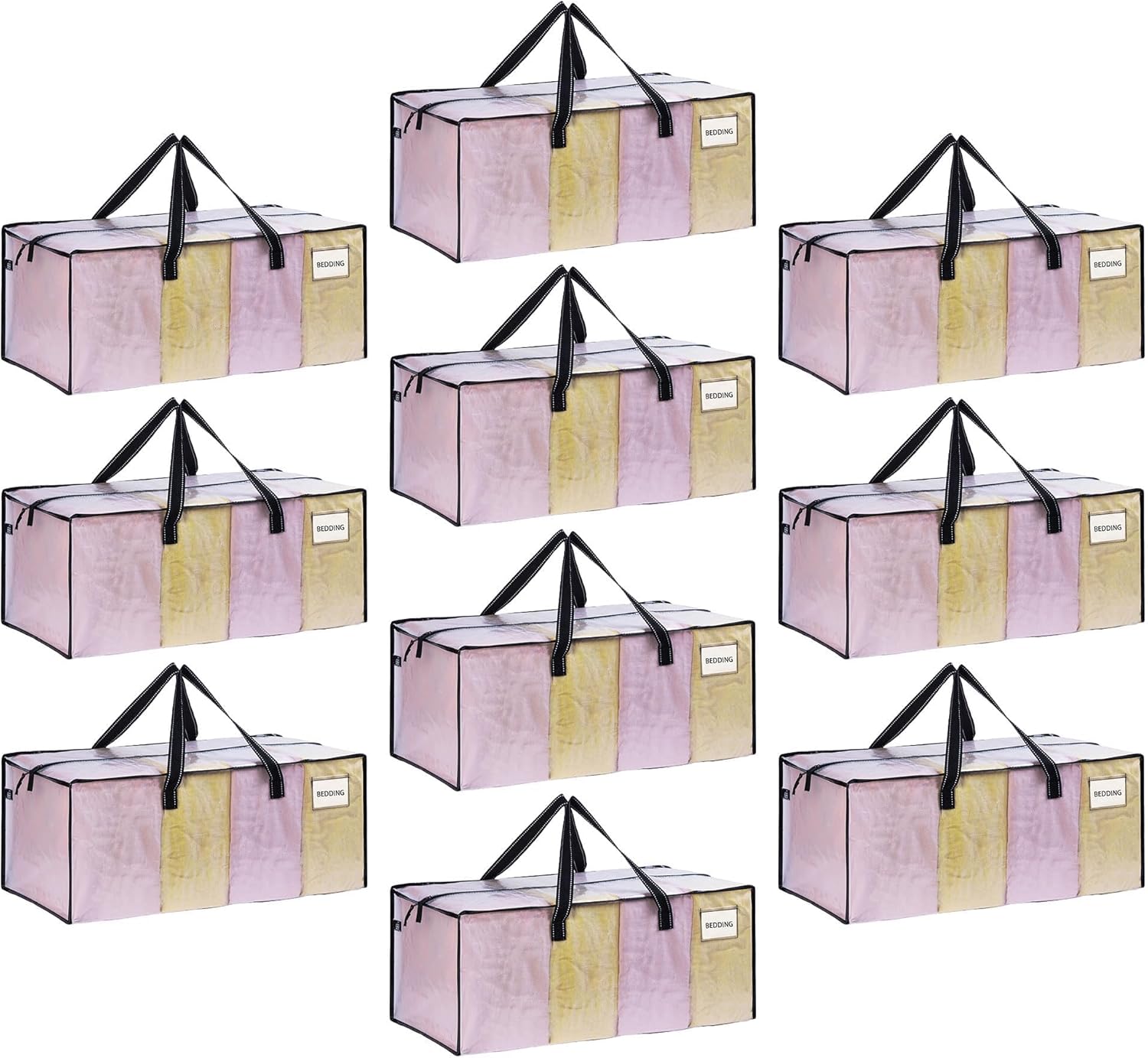 VENO 10 Pack Moving Bags Extra Large Storage Bags for College Move-In, Heavy-Duty Storage Totes, Packing Boxes, and Wardrobe Moving Supplies - Durable Laundry Bags for Clothes (Clear, 10 Pack)