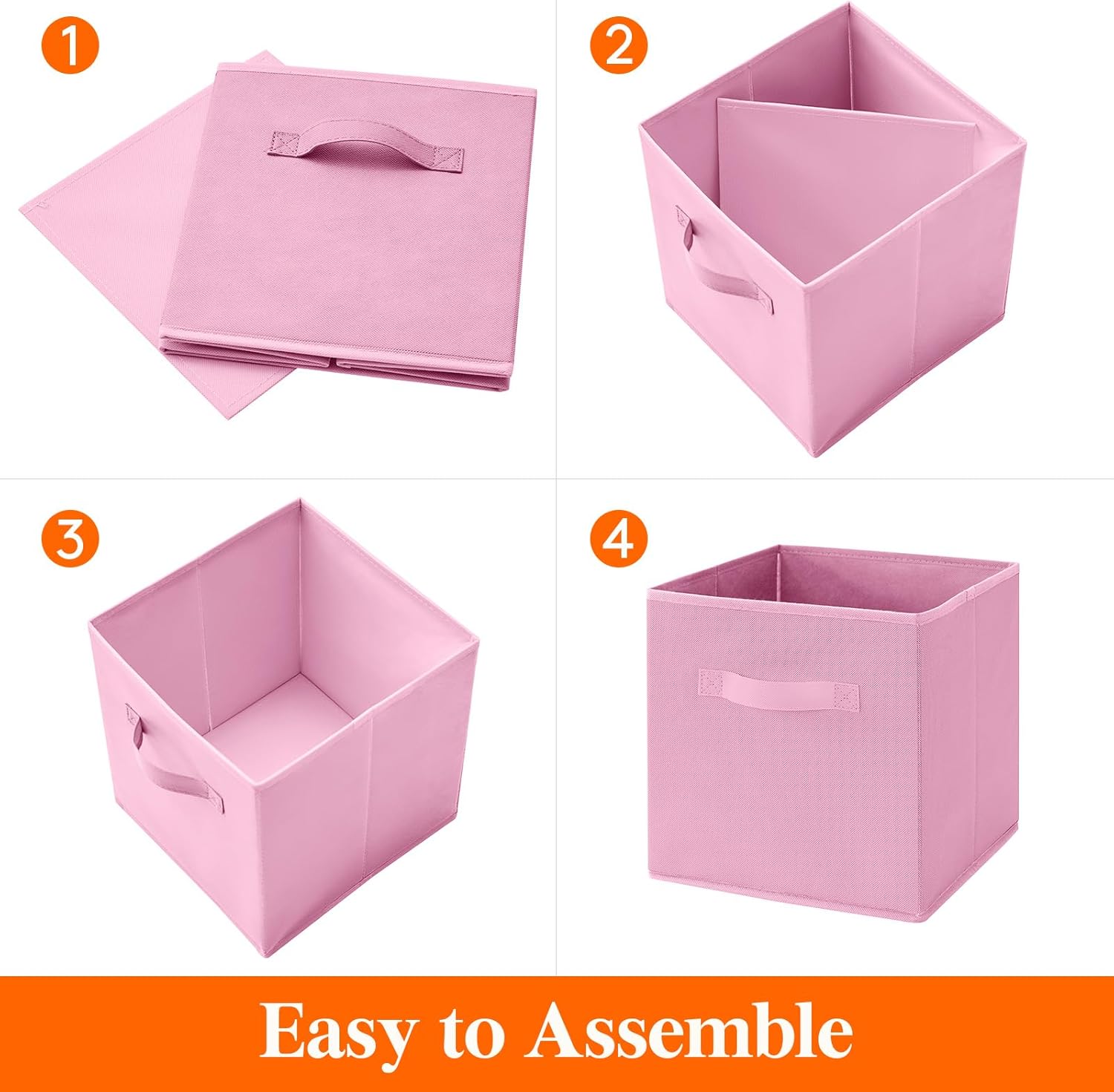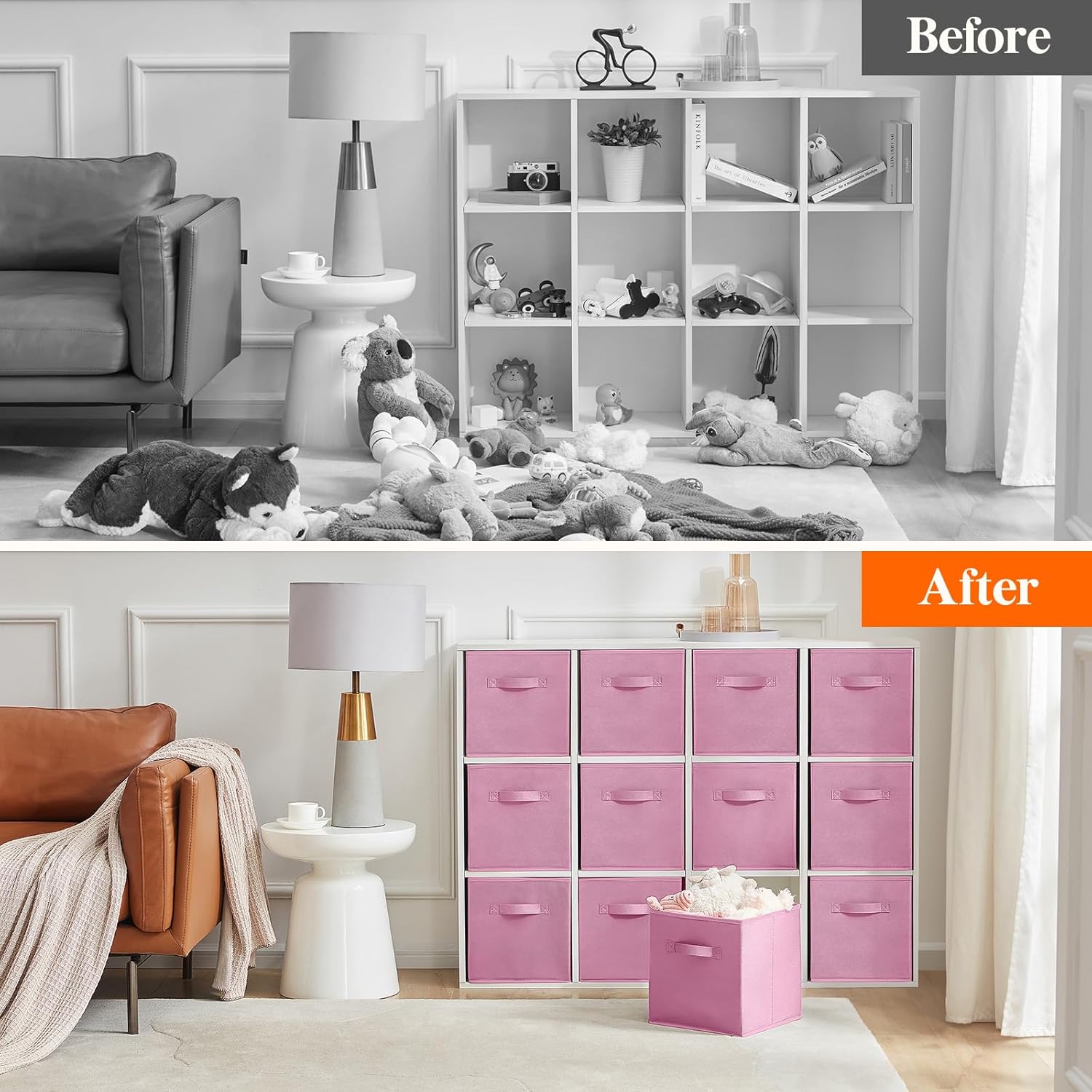 Lifewit 12 Packs Storage Cubes, 11 Inch Cube Storage Bins, Foldable Decorative Fabric Storage Baskets for Organizing Home Organizers with Handles for Shelves, Closet,Pink