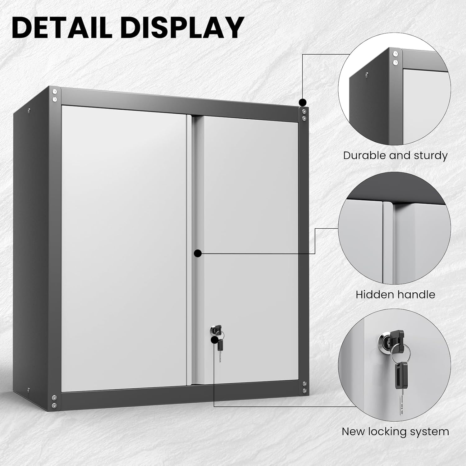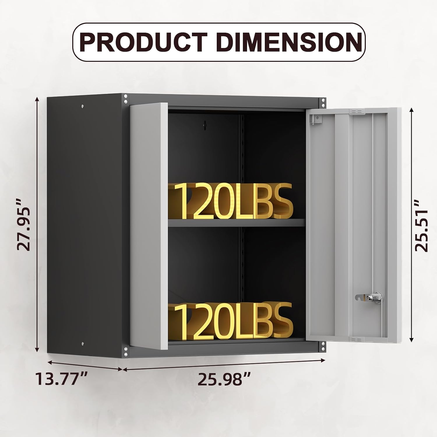 - 【Lock & 2 keys】 Our garage cabinets wall mounted is equipped with two locks and its 3-point locking system, which can ensure the safety of the items you store in the cabinet. If you want other replacement keys, please contact our customer service and we will arrange and send them to you.