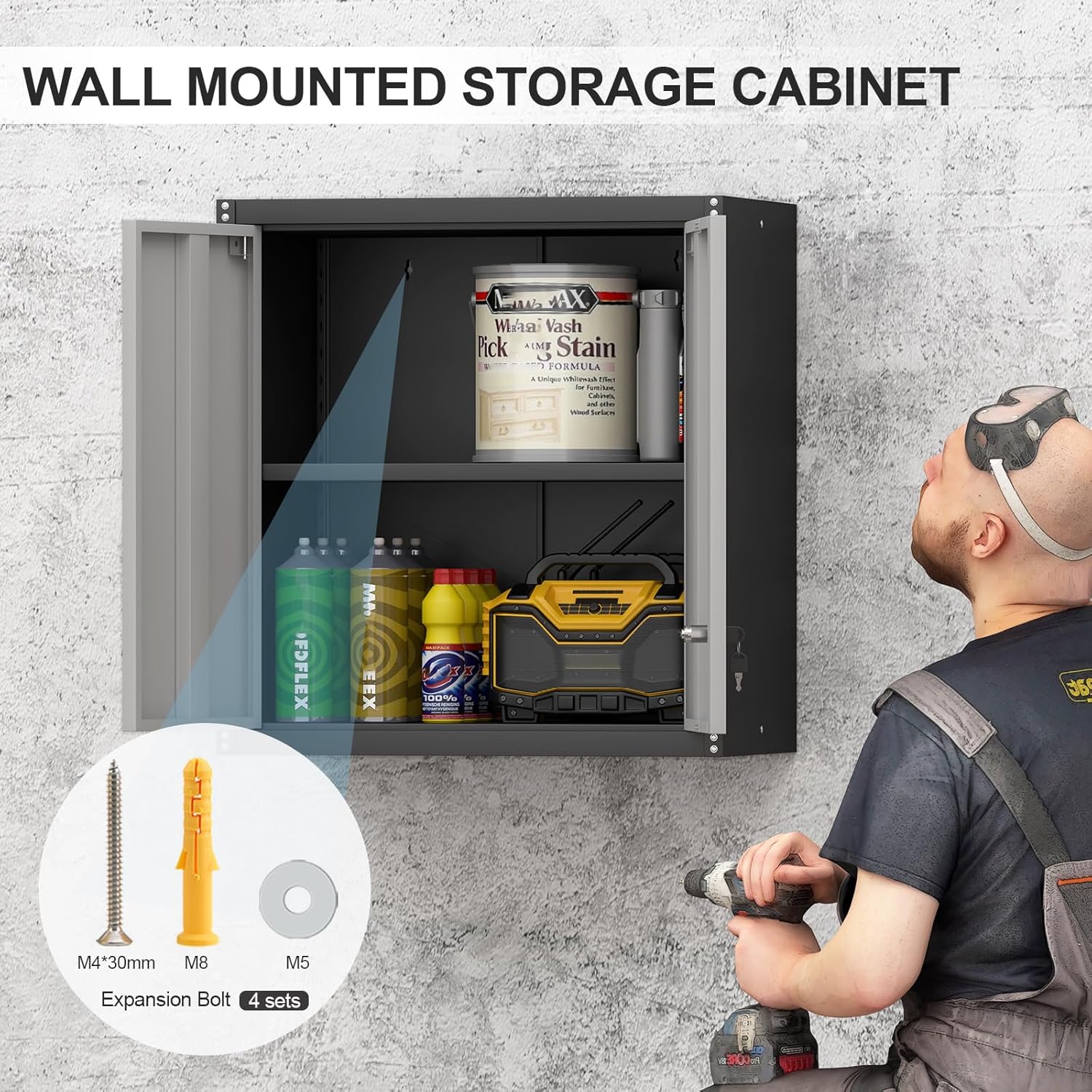 Metal Wall Cabinet, Garage Cabinets Wall Mounted, Locking Storage with Adjustable Shelves, Wall Mounted Garage Cabinet with Doors, Floating Cabinet for Home Office, Utility Room