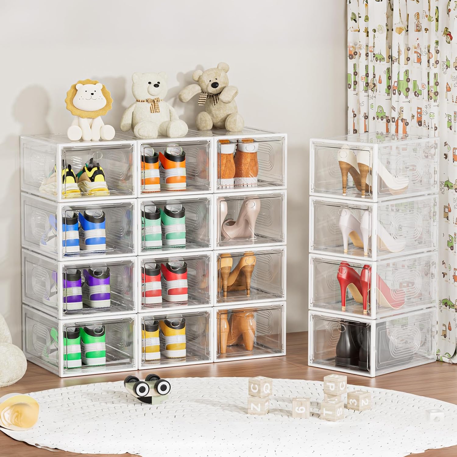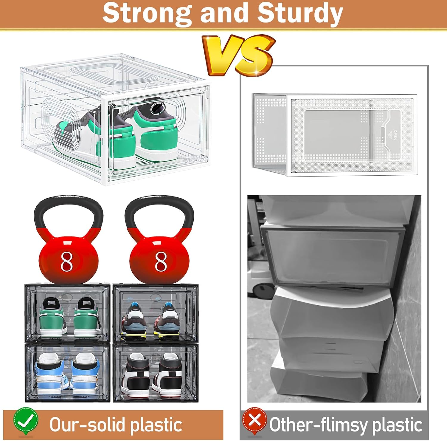 - 【Clear Shoe Box Stackable】Clear magnetic front door, stackable design, harder material, the shoe storage organizer provide you a more load-bearing multiple layers of shoe walls.You can find out the shoes with a glance over the boxes without open the boxes