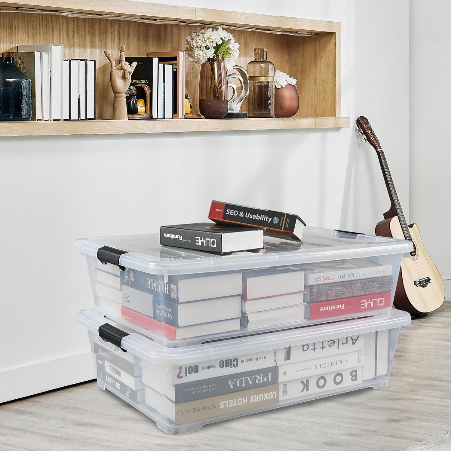 - Clear lids and body of these plastic bins makes it is simple to identify the items in the storage container