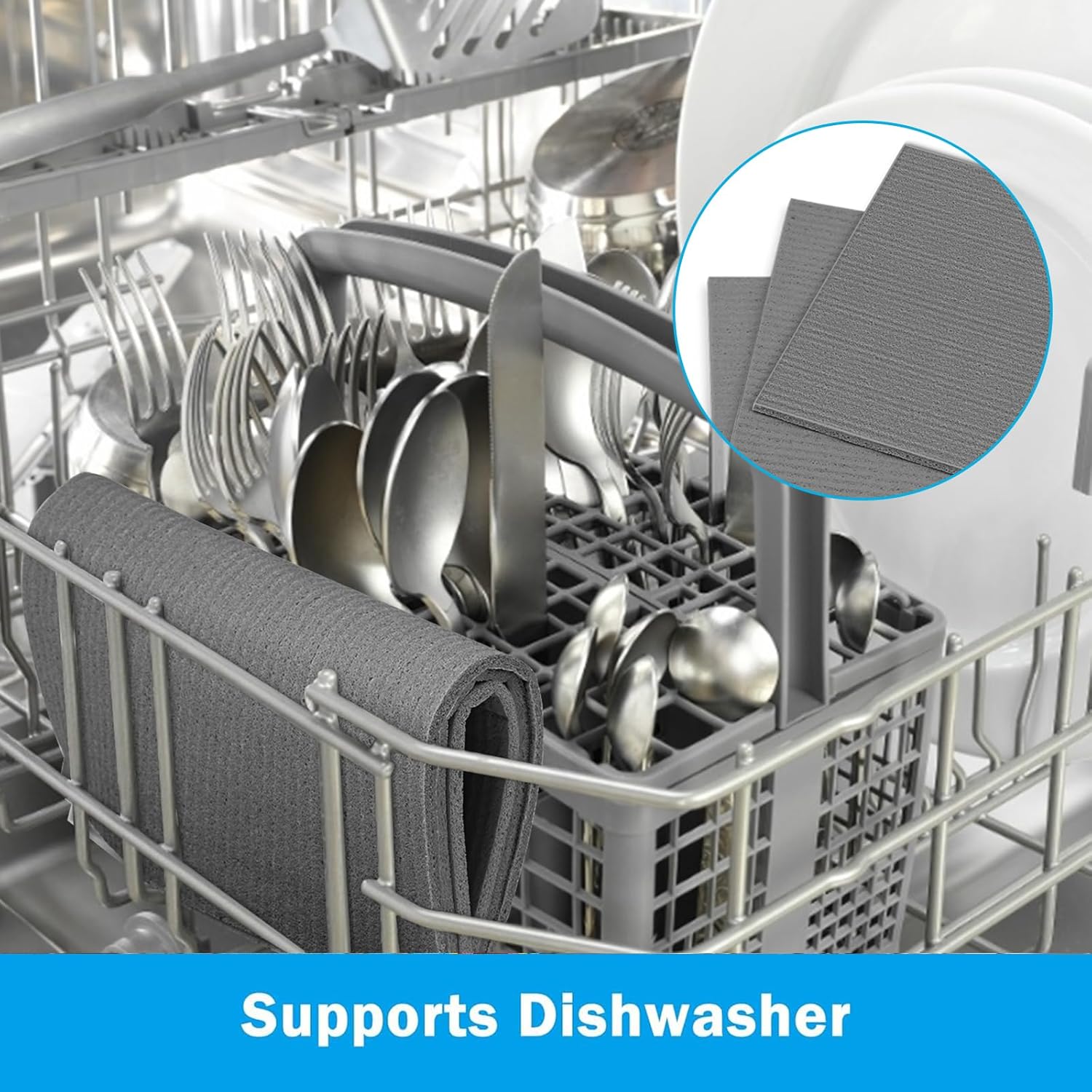 HOMEXCEL Swedish Dishcloths for Kitchen 10 Pack, Sponge Dish Cloth for Counters & Washing Dishes, Reusable and Absorbent Paper Towels, Grey