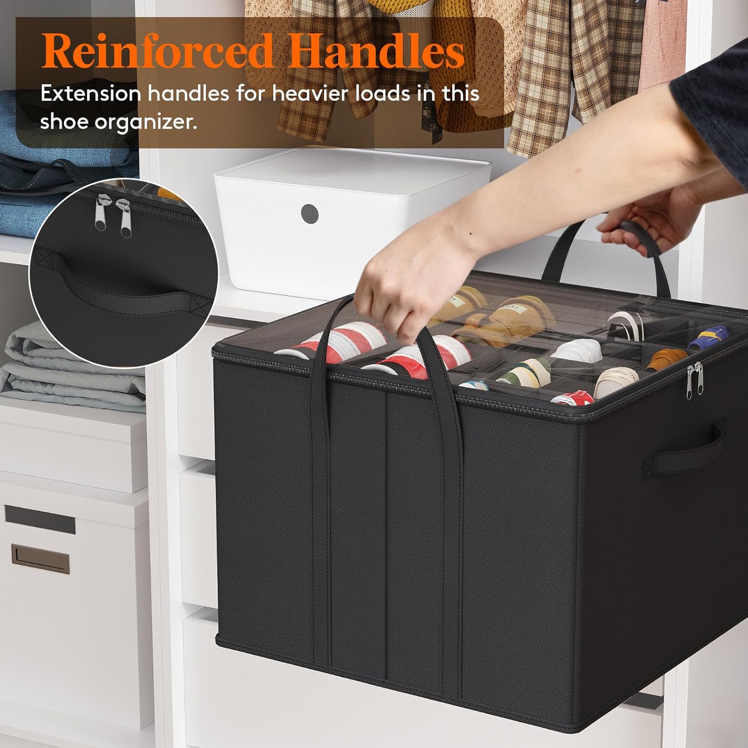 Lifewit Shoe Storage Organizer for Closet Fits 12-16 Pairs, Fabric Large Shoe Box Storage Container with Clear Cover, Foldable Bins Fit for Boots Heels Sneakers 17"(L) x 17"(W) x 12.5"(H) 1 Pack Black